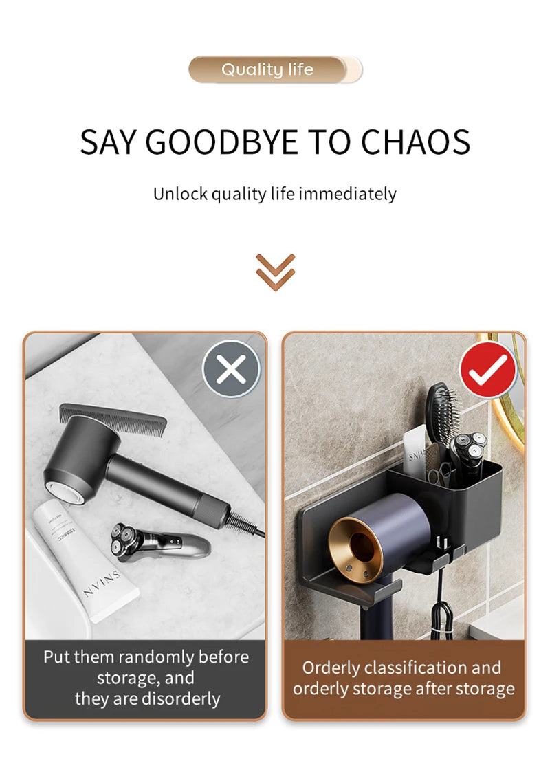 An der Wand montiertes, nicht perforiertes Haartrockner-Lagerregal. Aufbewahrungs- und Platzierungsregal für Badezimmer-Haartrockner. Multifunktionales Lagerregal