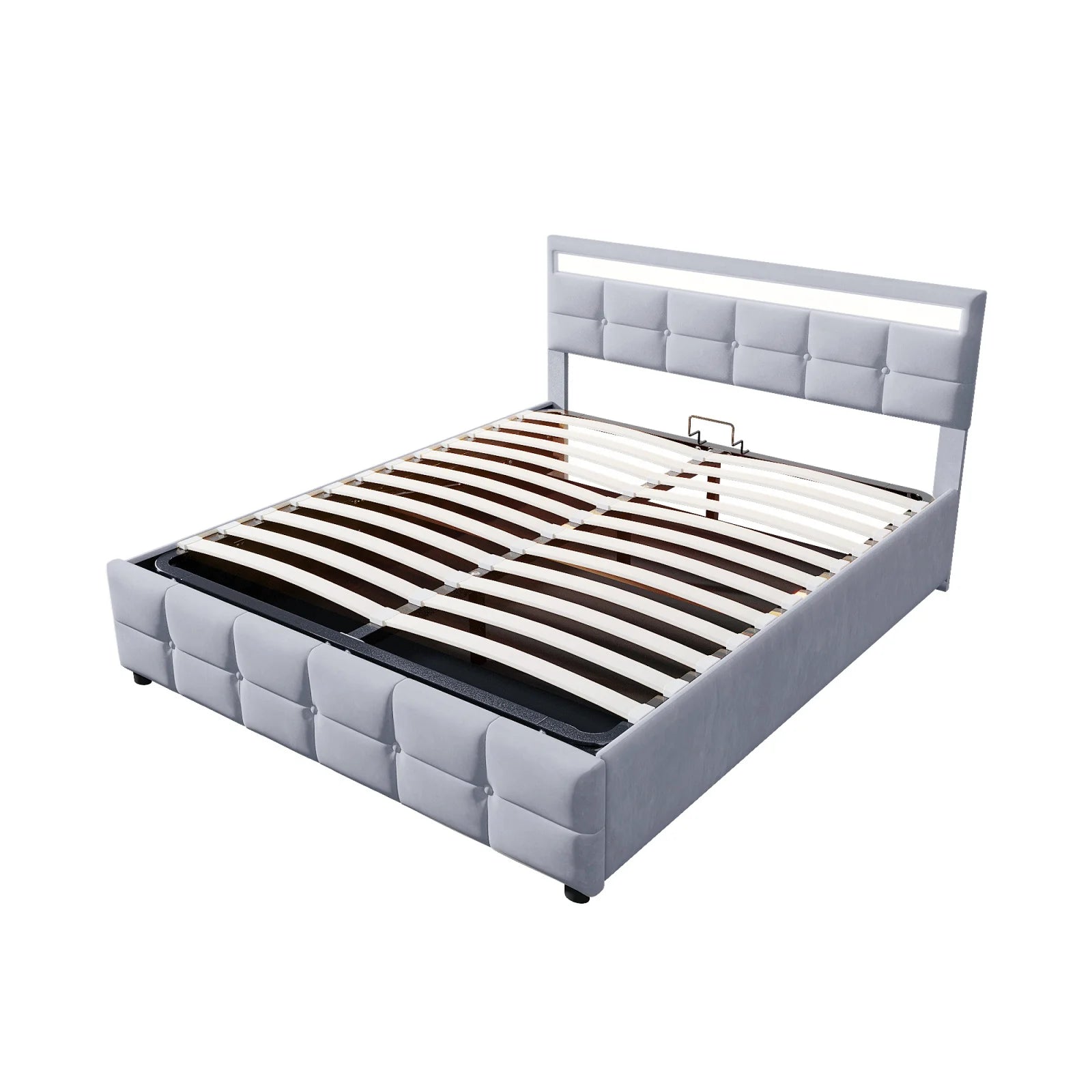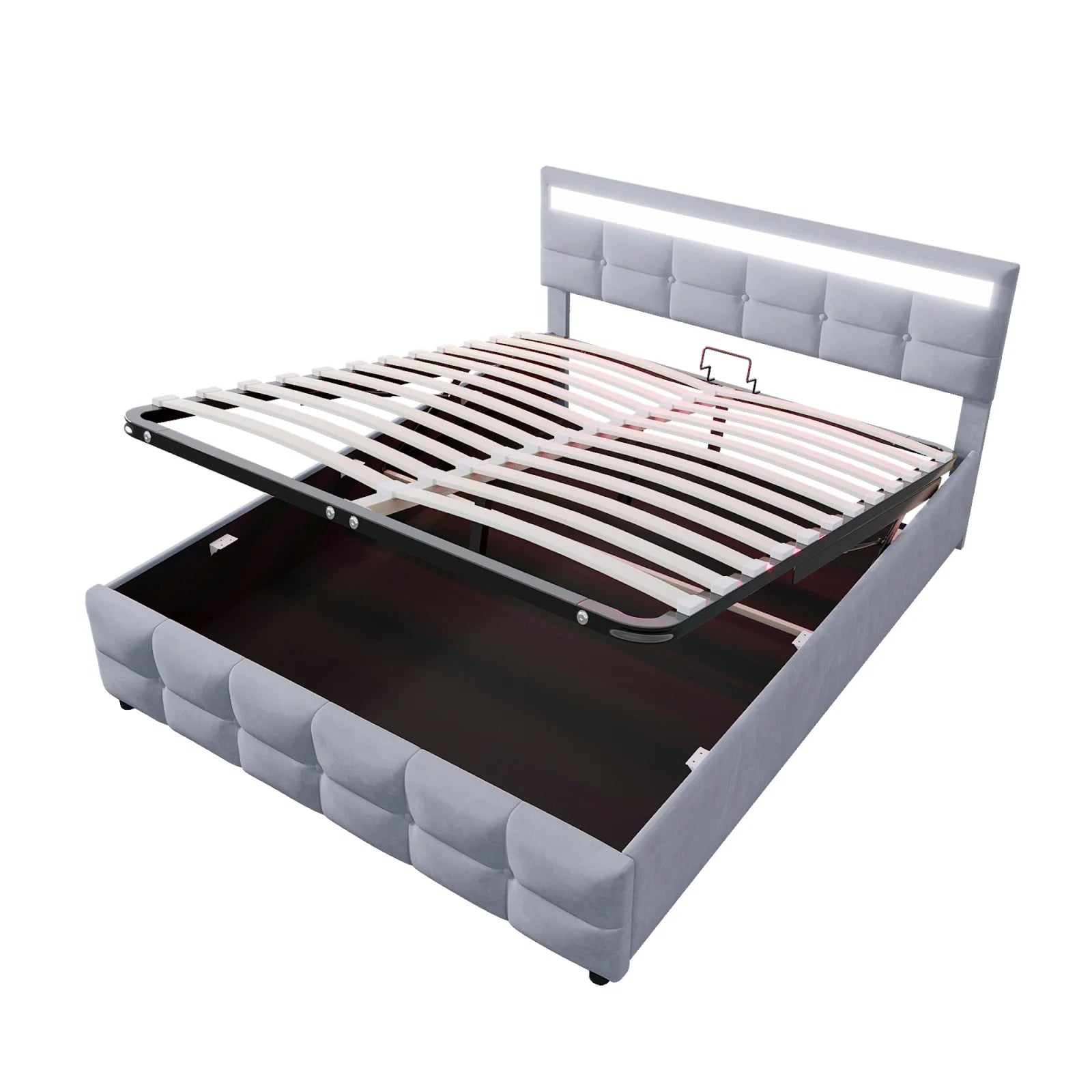 Anajqaqia Polsterbett 180 x 200 cm, hydraulisches Bett mit großem Stauraum, Doppelbettrahmen mit Lattenrost, Samt, Grau