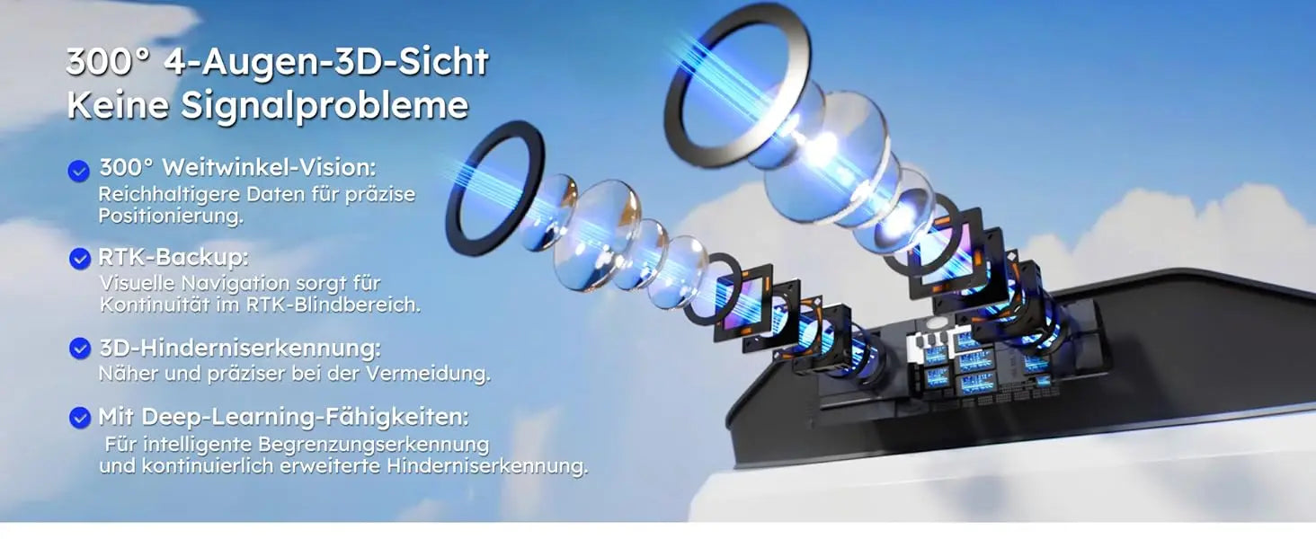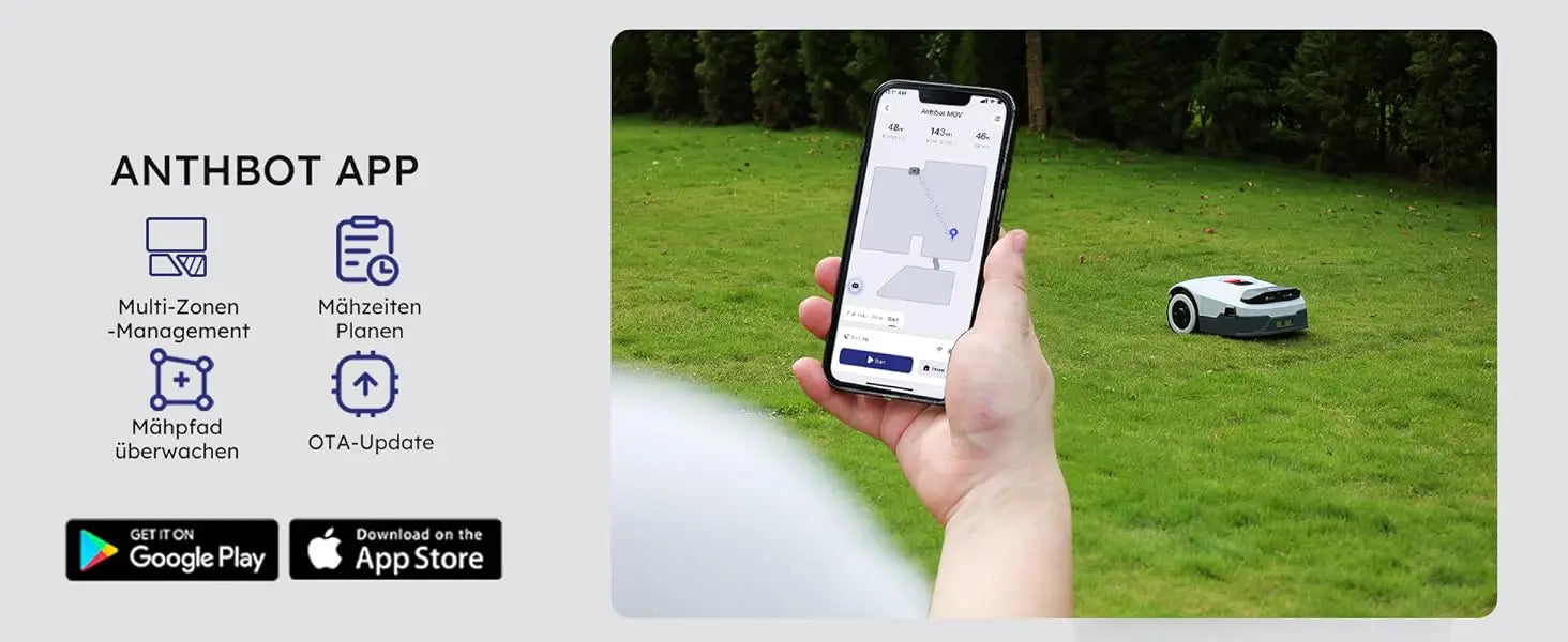 ANTHBOT Genie 600 AI kabelloser Roboter-Rasenmäher, max. 900 m2, Vollfrequenzband RTK + 4-kamera-Vision-Rasenmäherroboter