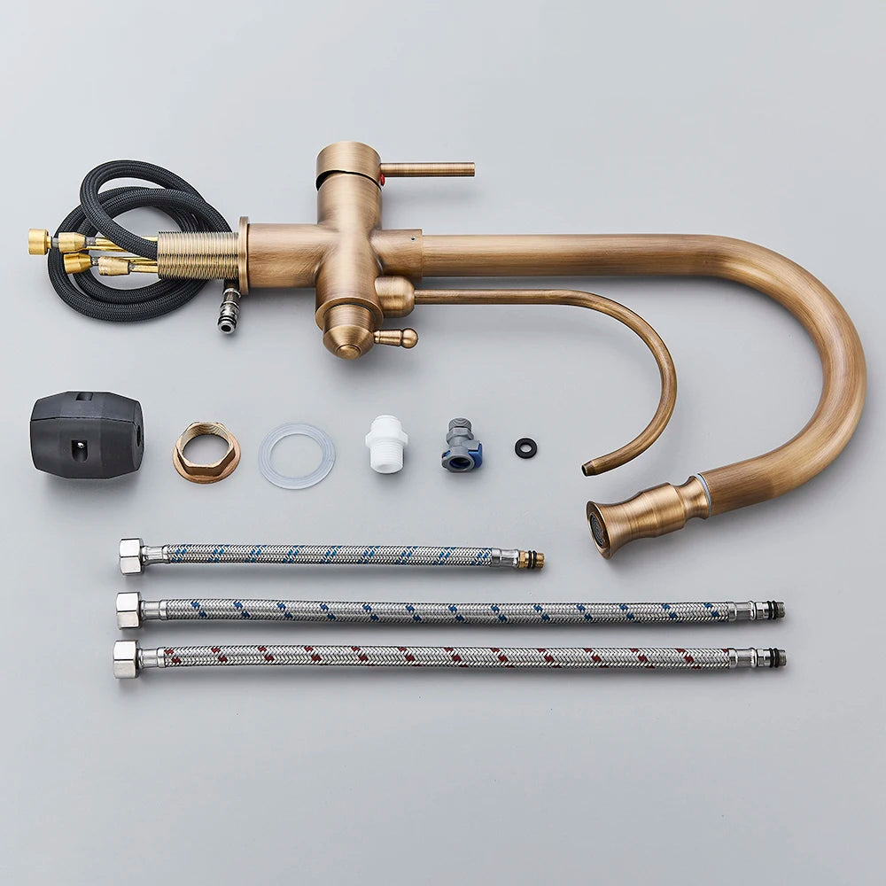 Antique Kitchen Sink Pure Faucet Pull Out Spout Hot Cold Mixer Taps Deck Mount Hot Cold Mixer Taps Purification Kitchen Crane