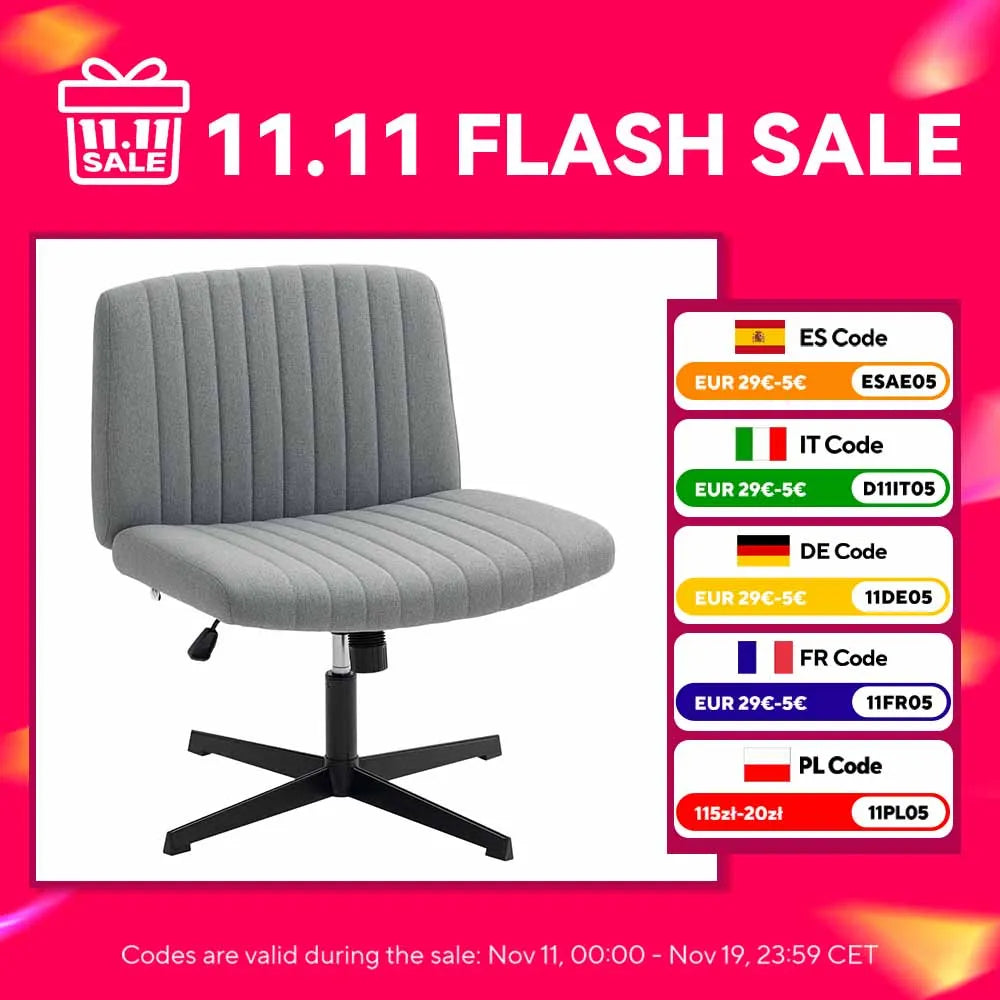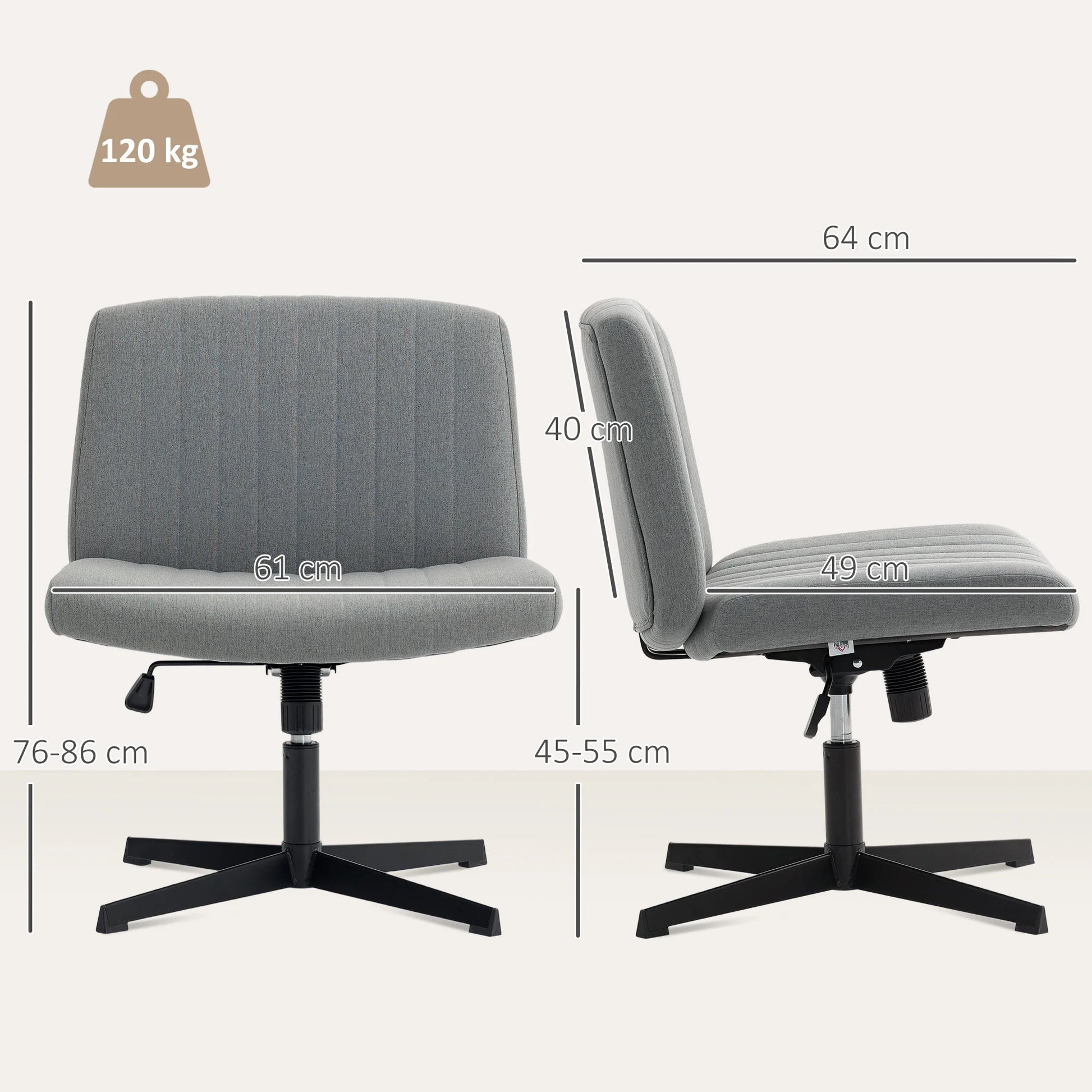 Armloser Bürostuhl, neigbarer Schreibtischstuhl mit gekreuzten Beinen, breitem Sitz und höhenverstellbar, Grau