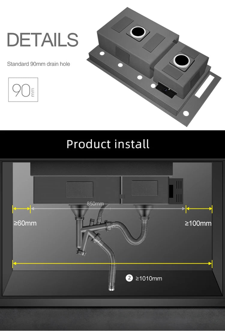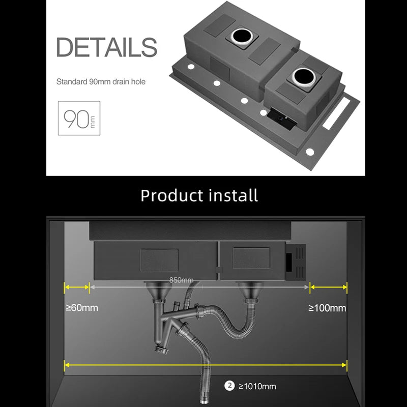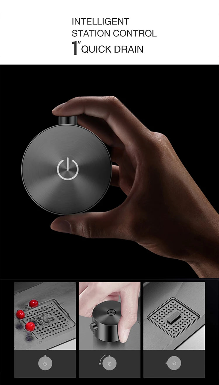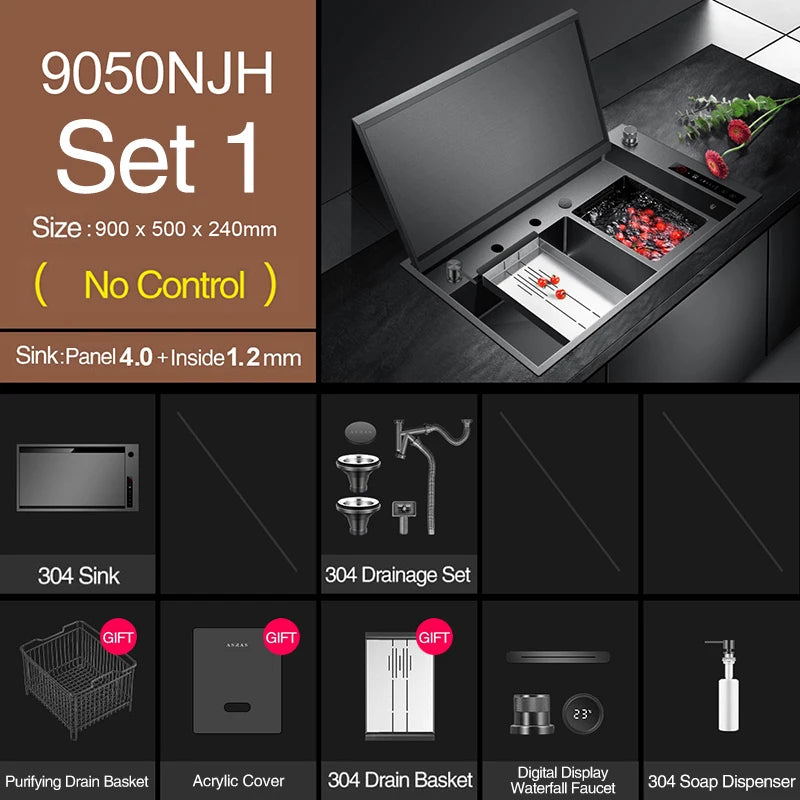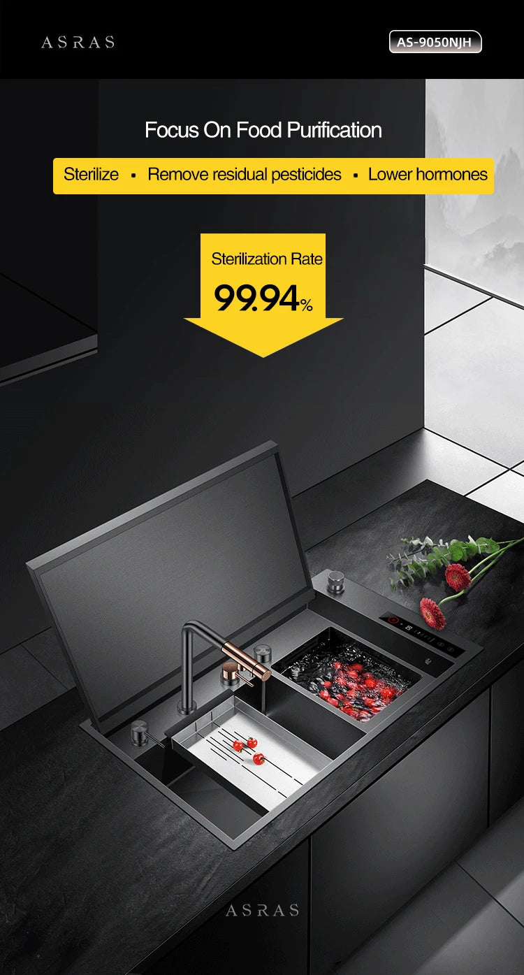 ASRAS Hidden Double Sinks Smart Purifying Kitchen Island Sinks Flip Cover Hidden 4mm Thickness Handmade kitchen Sinks