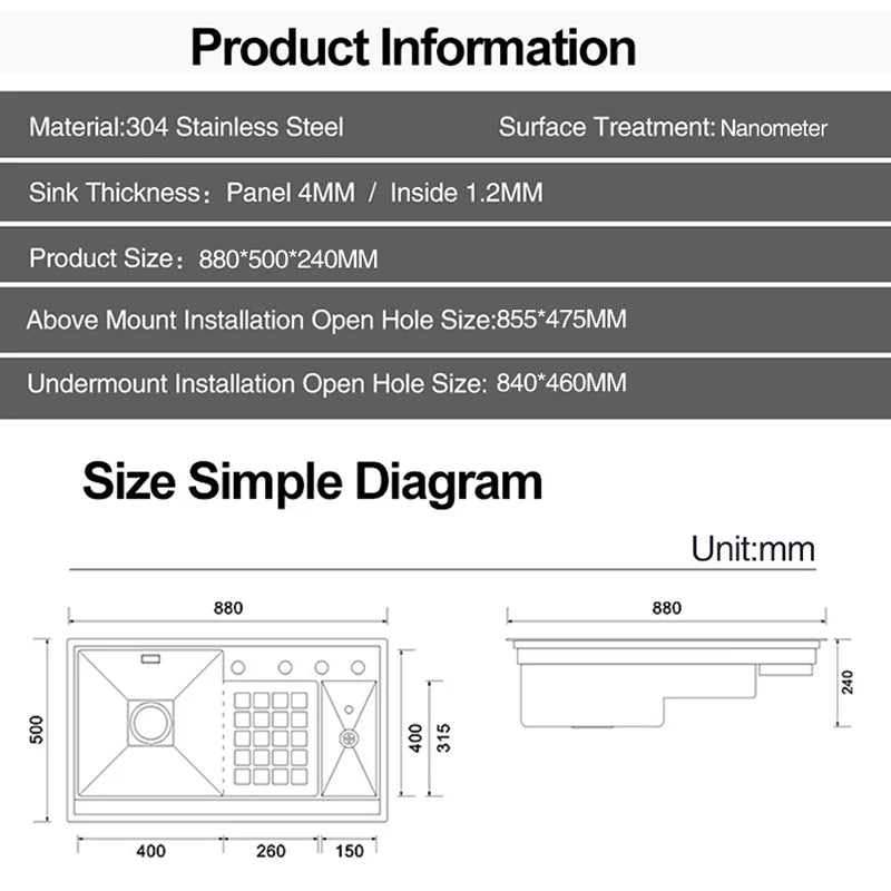 ASRAS Large Size Flip Cover Hidden Island Kitchen Sink 304 Stainless Steel 4mm Thickness Handmade Stepped Sink Cup Rinser Sinks