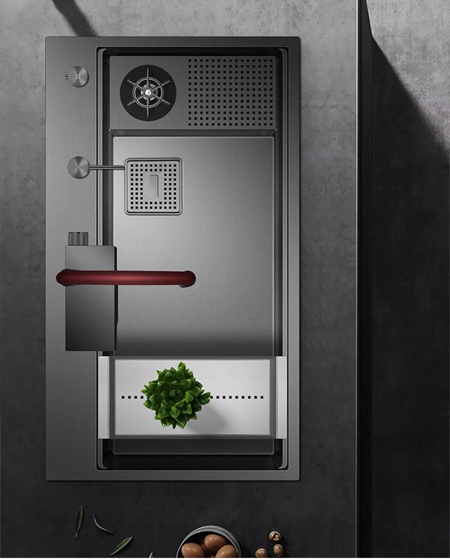 ASRAS New Waterfall Faucet Kitchen Sinks Nanometer Large Size 4mm Panel Handmade Sinks Cup Rinser Kitchen Sinks