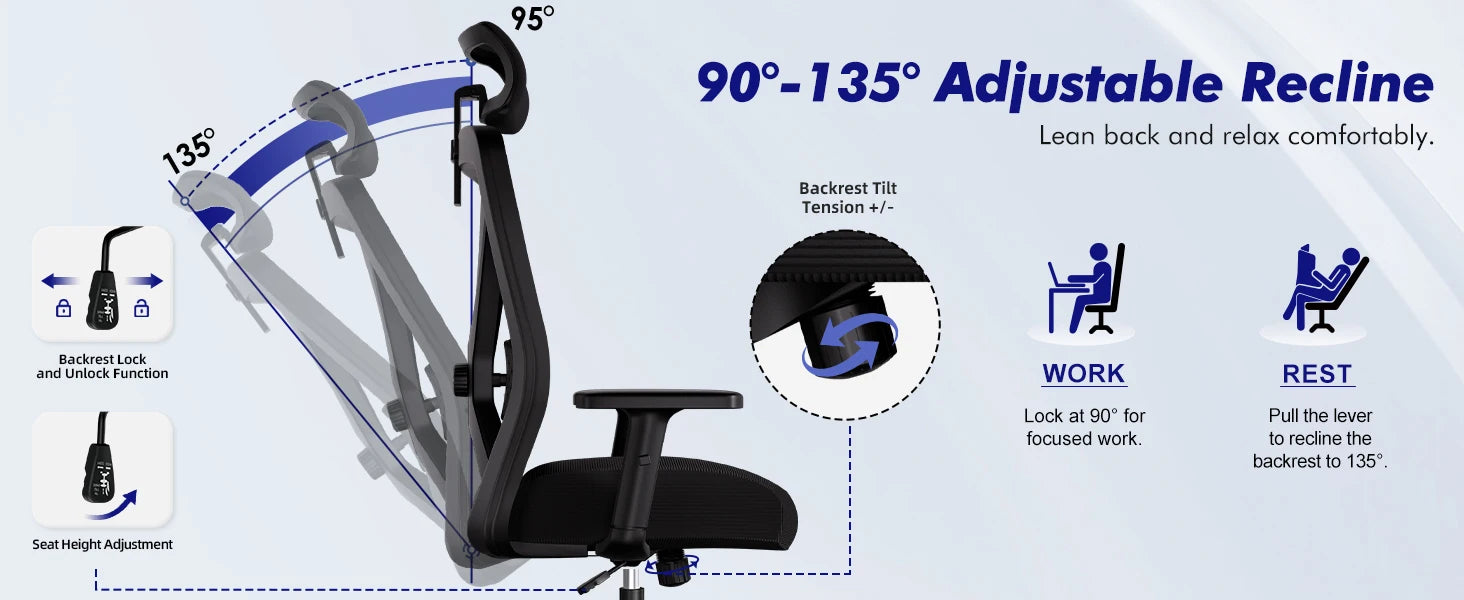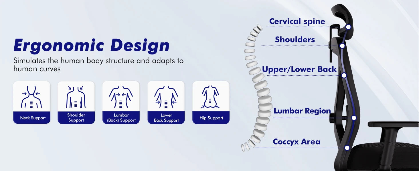 AUTHMIC Ergonomischer Bürostuhl, verstellbare Netzrückenlehne, Lordosenstütze, drehbarer Computer-Schreibtischstuhl für Zuhause, Büro, Arbeit, Gaming