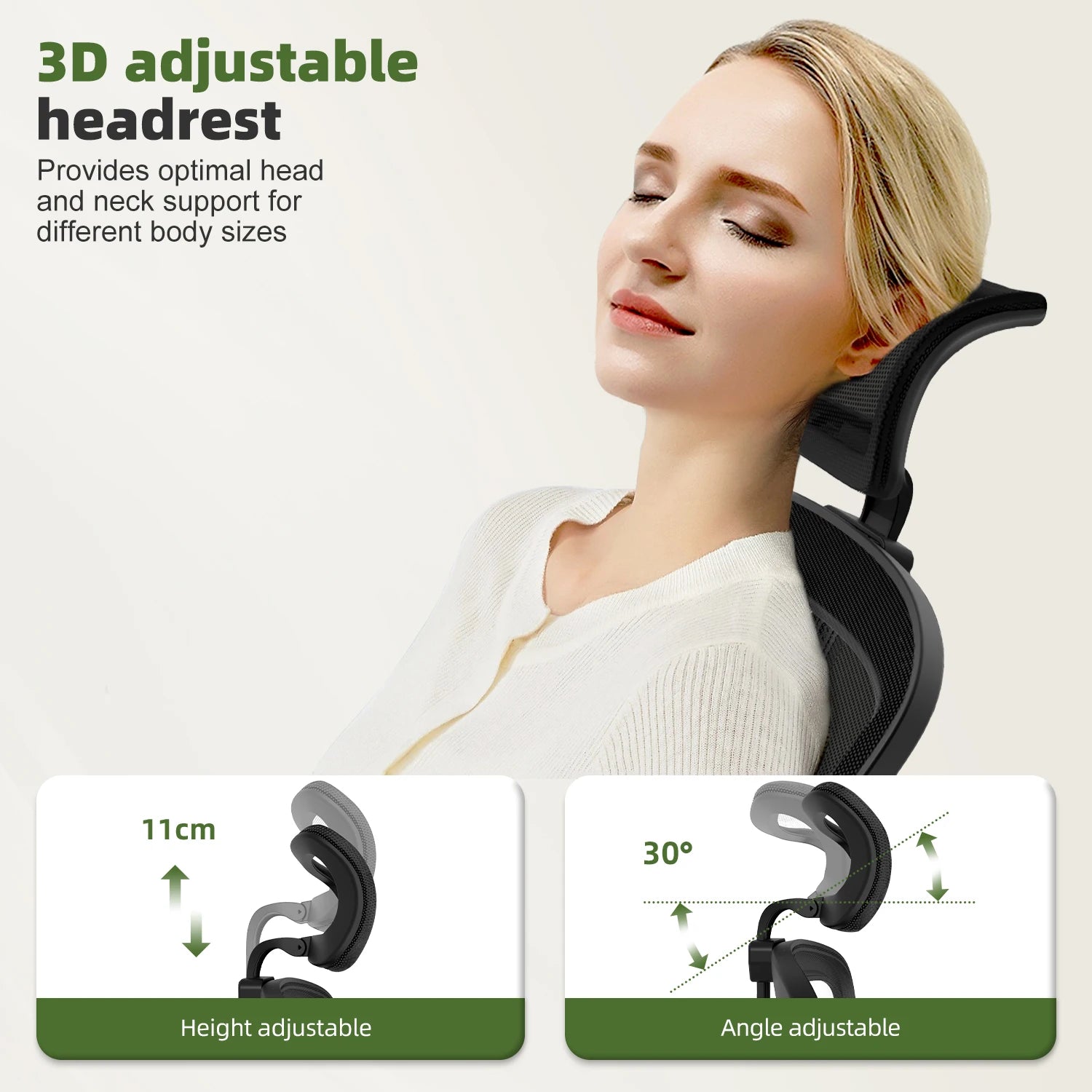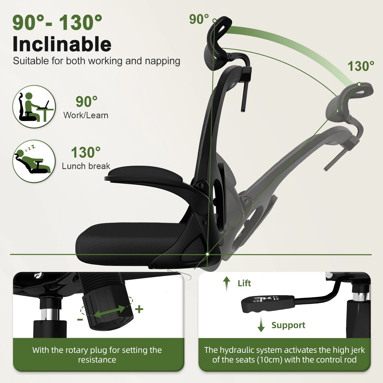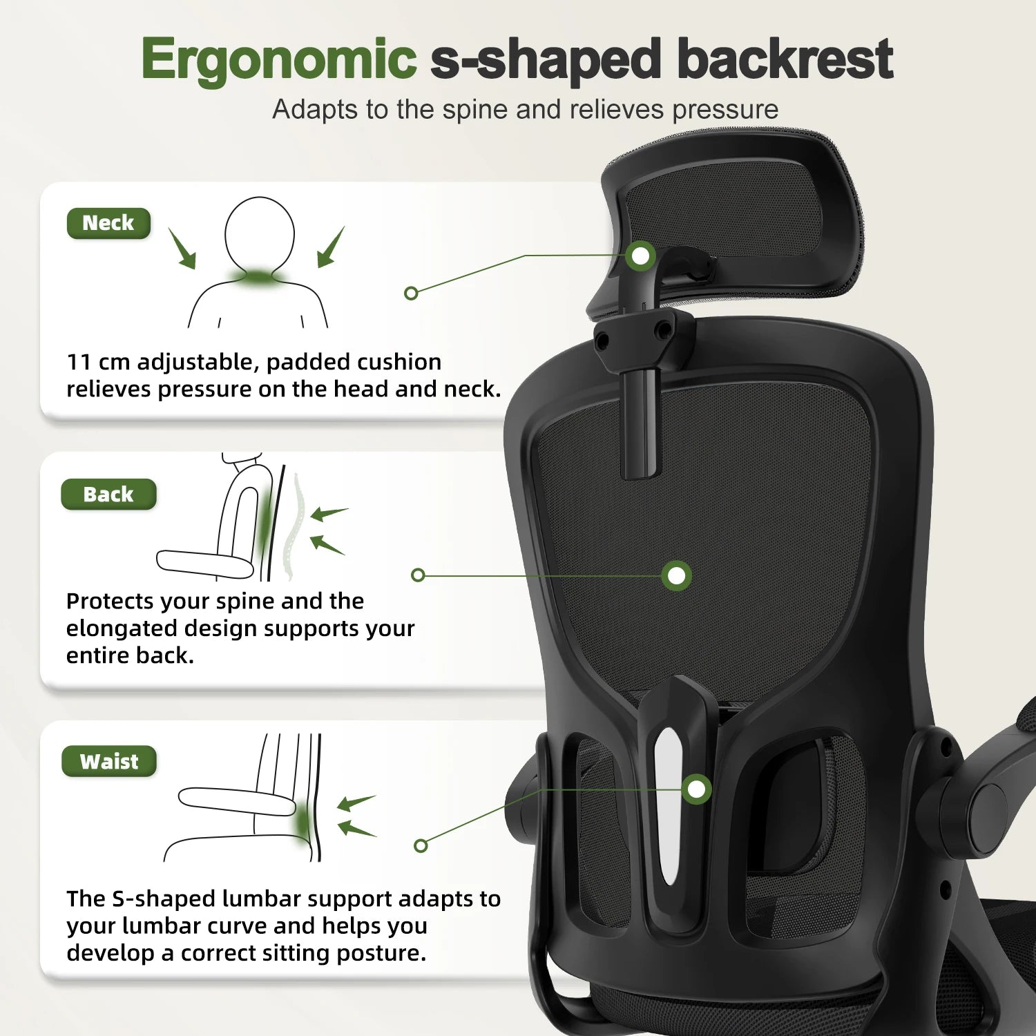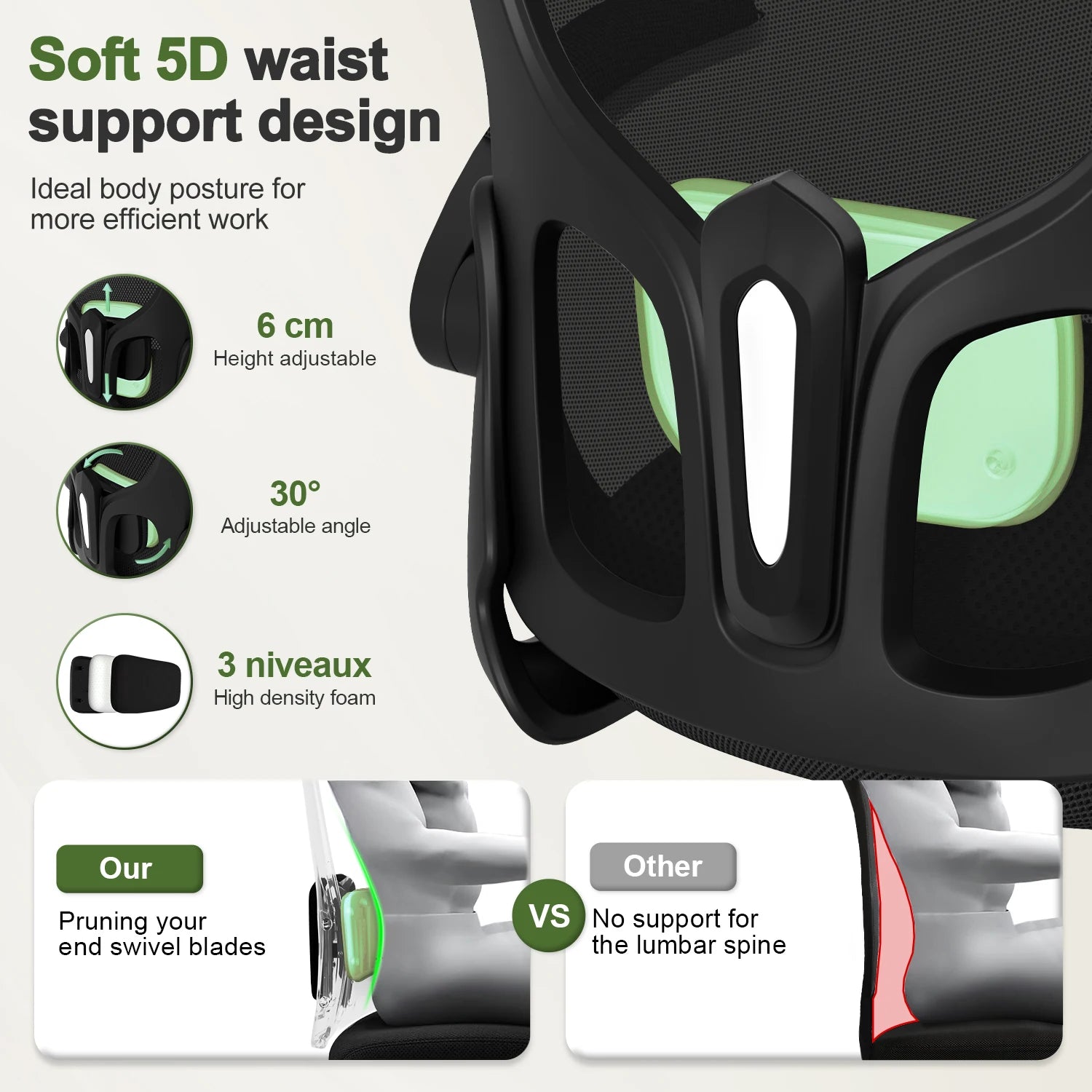 AUTHMIC Ergonomischer Bürostuhl, verstellbare Netzrückenlehne, verstellbare Lordosenstütze, hochdichter Schaumstoffsitz, Heimarbeitskomfort