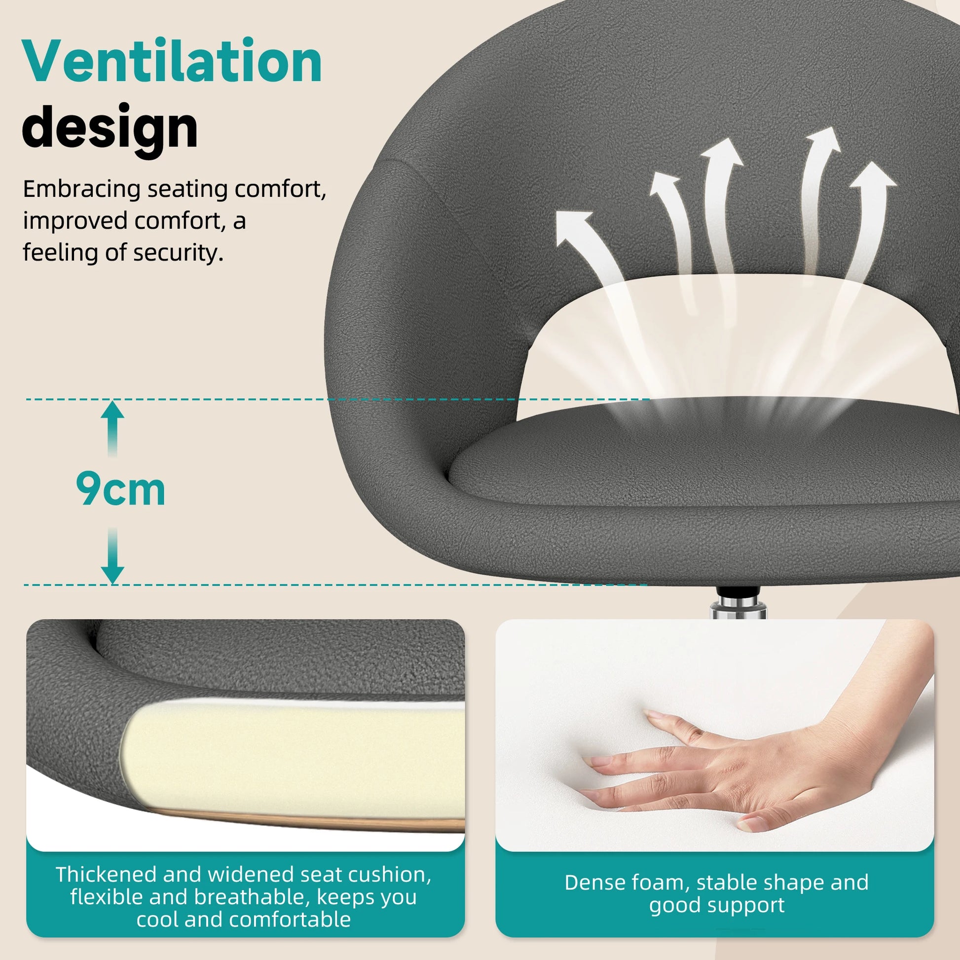 AUTHMIC Ergonomischer drehbarer Schminkstuhl mit Rückenstütze, höhenverstellbar, geräuschloser Rollen, Make-up-Schreibtischsitz für das Heimbüro