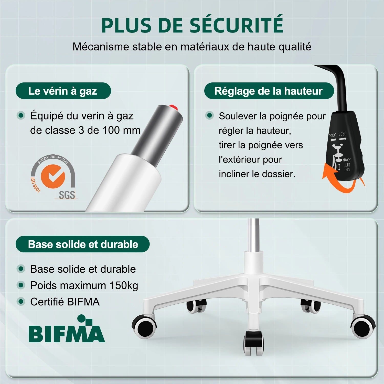 AUTHMIC Ergonomischer Netz-Bürostuhl mit Lordosenstütze, hochklappbaren Armlehnen, verstellbarer und höhenverstellbar für den Schreibtisch zu Hause – Grau