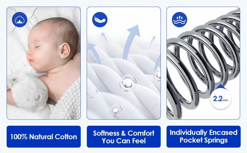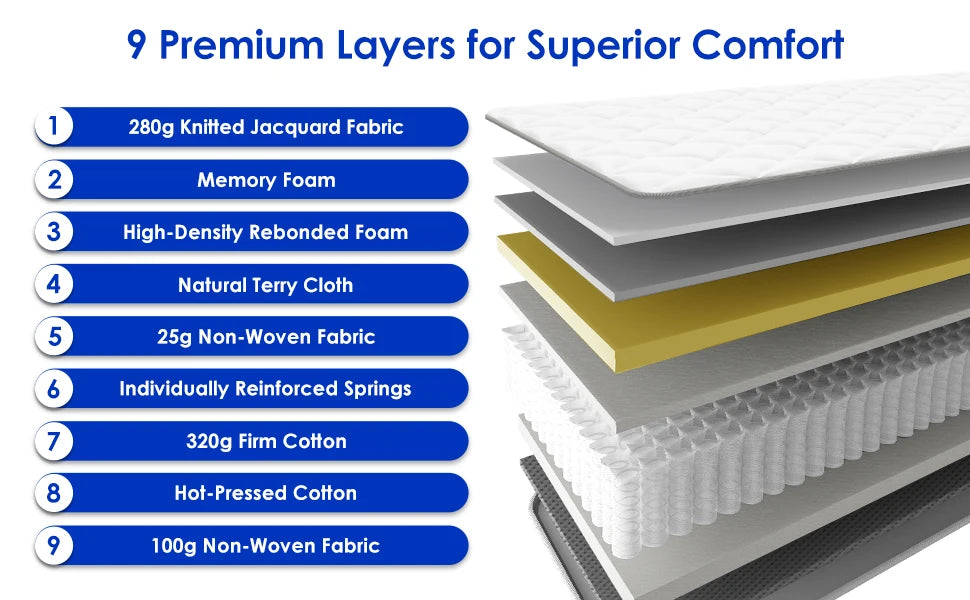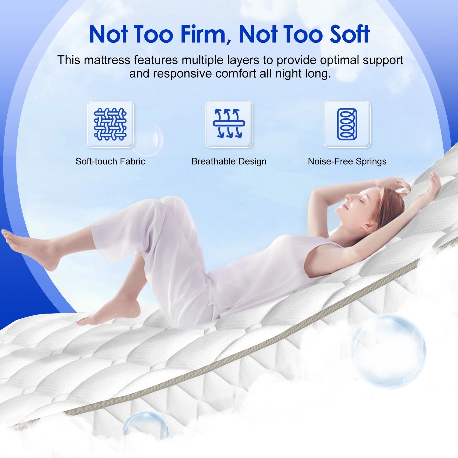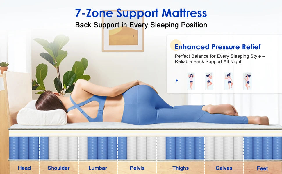 AUTHMIC Matratze, 22 cm dick, 7-Zonen-Unterstützung, mittelfeste, atmungsaktive Bett-Taschenmatratze zur Linderung von Rückenschmerzen, bequemer Schlaf