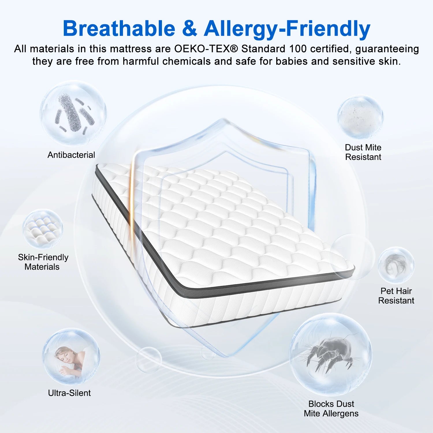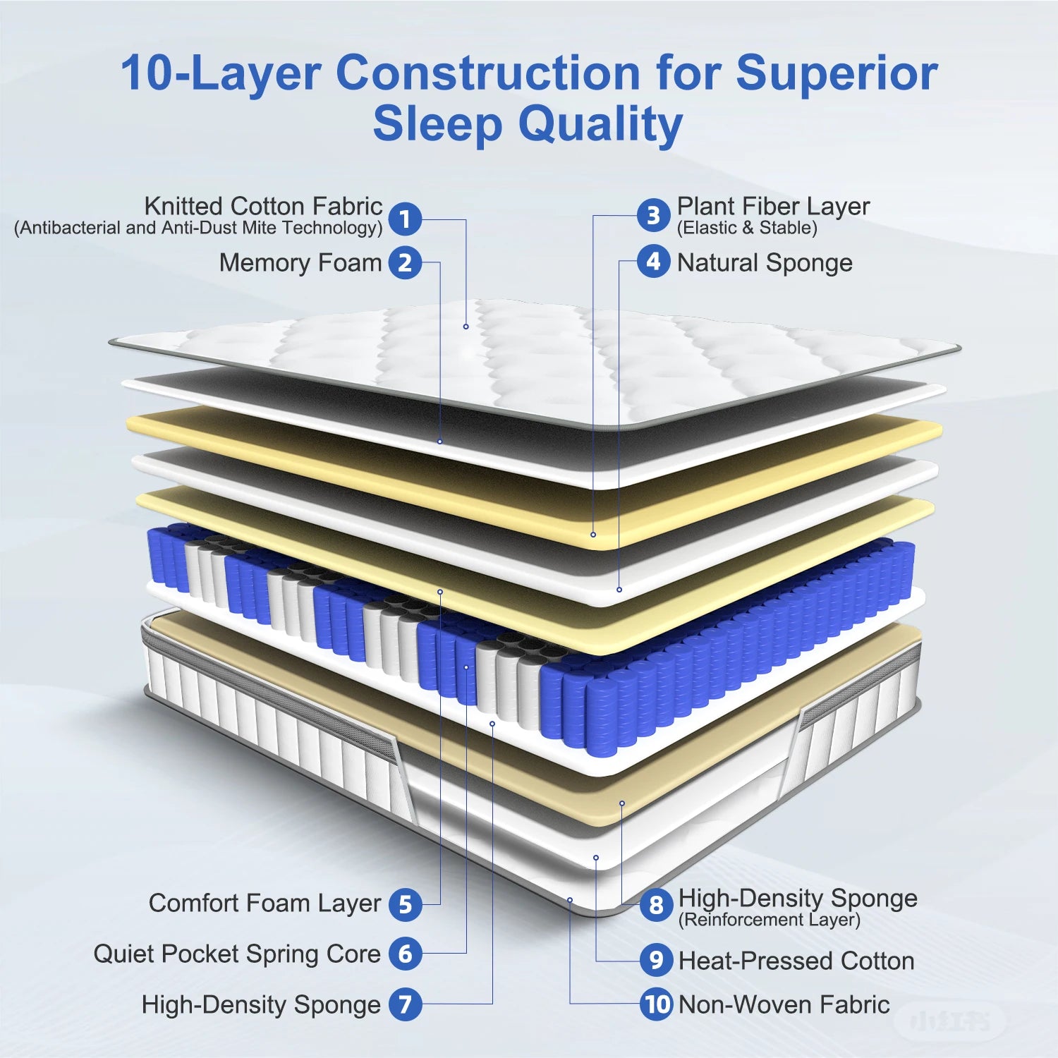 AUTHMIC Matratze – Taschenfederung, 7-Zonen-adaptive Unterstützung, 25 cm dick, atmungsaktiv und hautfreundlich, mittelfestes Gefühl, ruhiger Schlaf