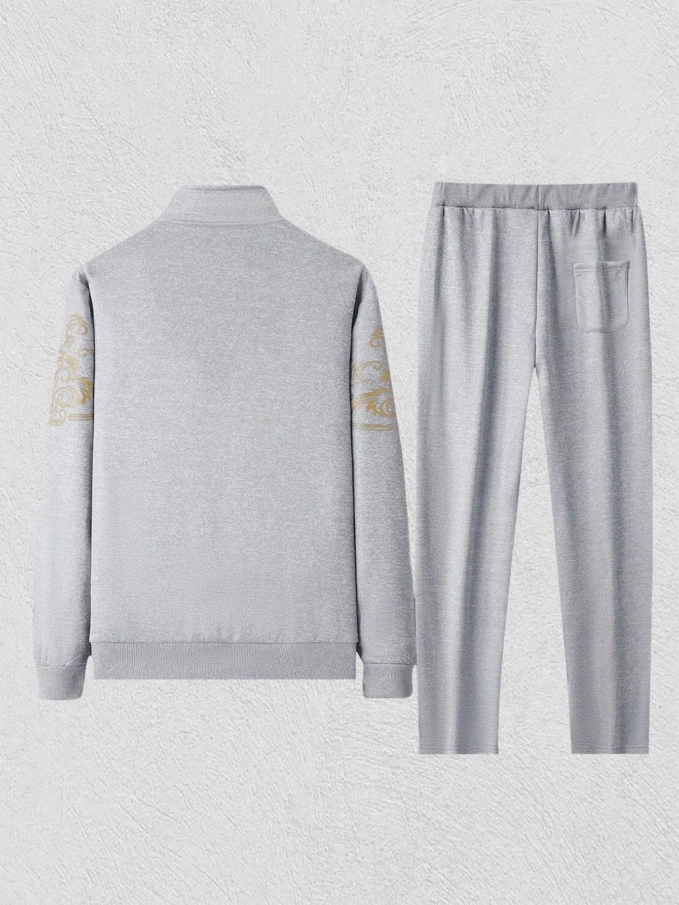 Autumn and winter men's set zipper Stand-up collar sportswear set suitable for fitness running exercise 2 pieces set