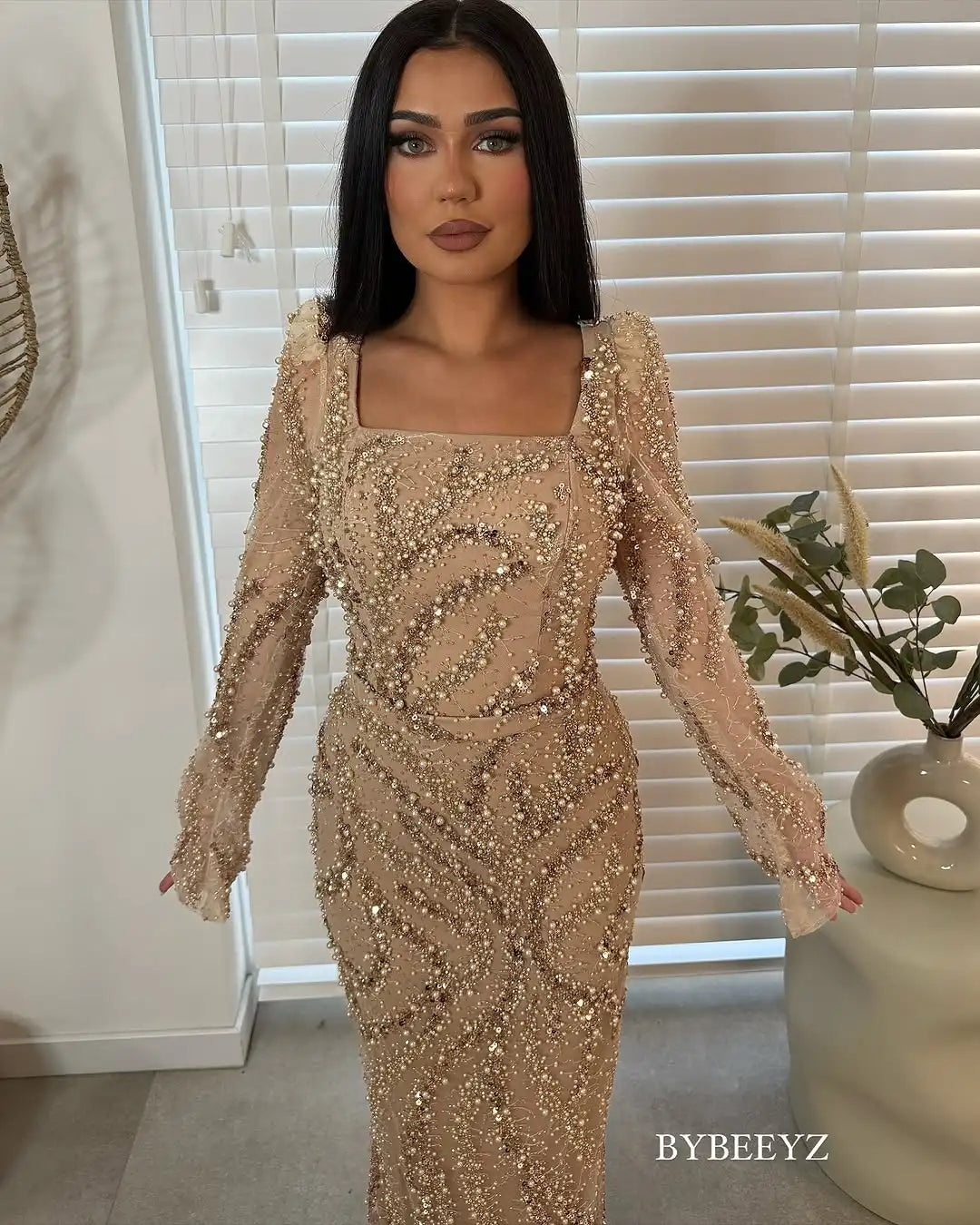 BABYONLINE Maßgeschneidertes Abendkleid All CoPearl Sleeve Full Crystals Etuikleid Abiye