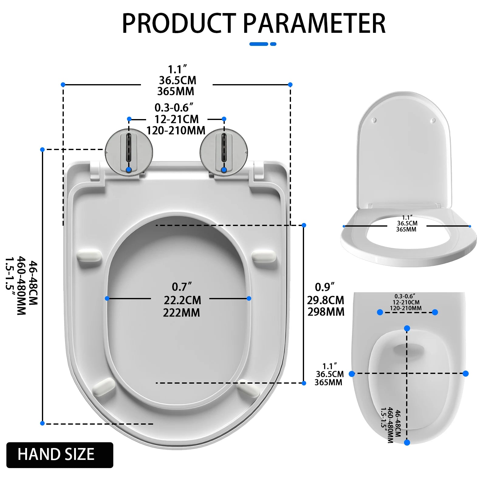 Badezimmer-Toilettensitz mit Soft-Close-Schnellverschluss, D-förmiger Toilettendeckel, einfache obere Befestigung mit 360-Grad-verstellbaren Scharnieren, Toilettensitze
