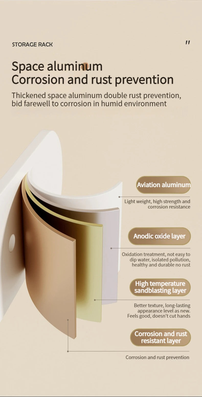 Badezimmerregal, Badezimmerregal, Toilettenlagerregal, Toilette, Küchenraum, Aluminium, zum Aufhängen an der Wand, stanzfreies Regal