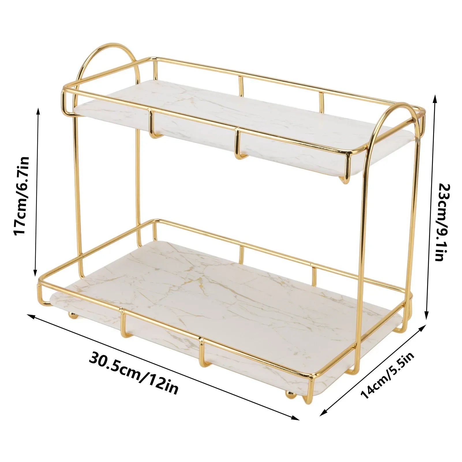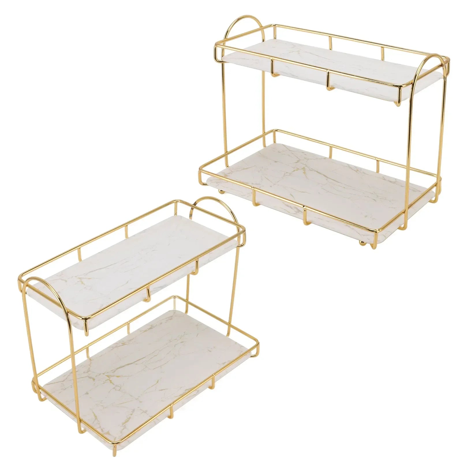 Badezimmerregal, goldfarben, weiß, 2-stufig, für Shampoo, Aufbewahrungsregal, rutschfest, für Make-up, Dusche, Eckregale, Badezimmer-Organizer, Zubehör