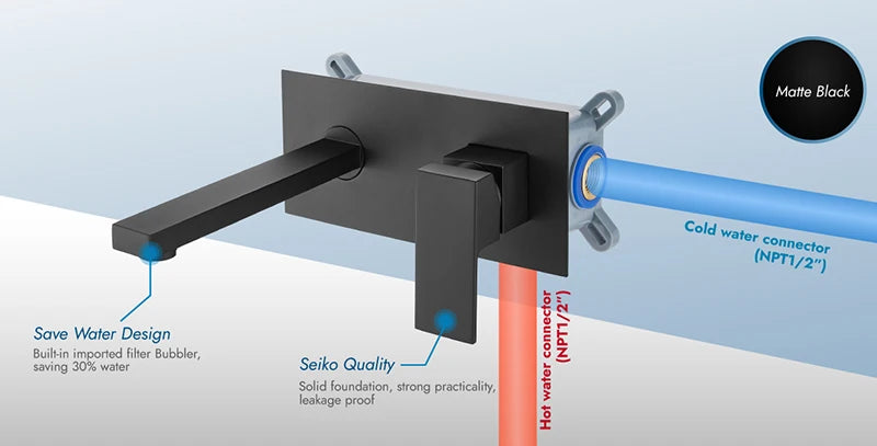 BAKALA Luxury Mirror Matte Black White Bathroom Faucet Basin Sink Tap Wall Mounted Square Brass Mixer LT-320BR