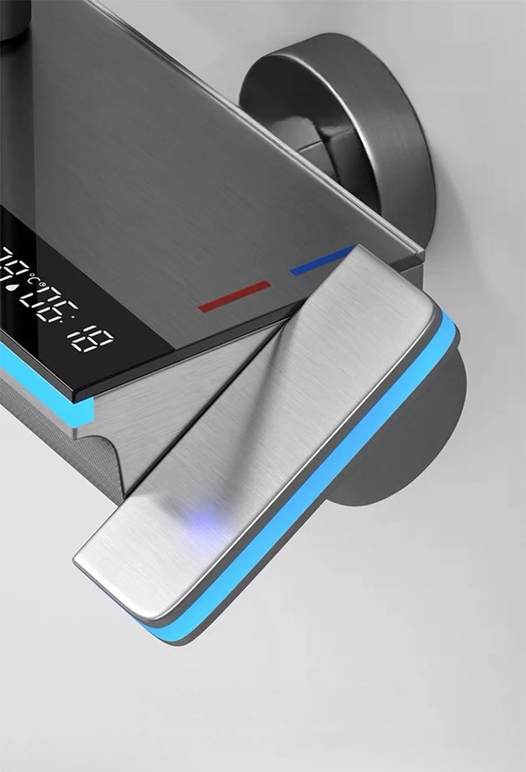 Bathroom Luxury Shower Faucet System with Lights Tempered Glass Shower Set Digital Display Copper Mixer Shower Faucet Set