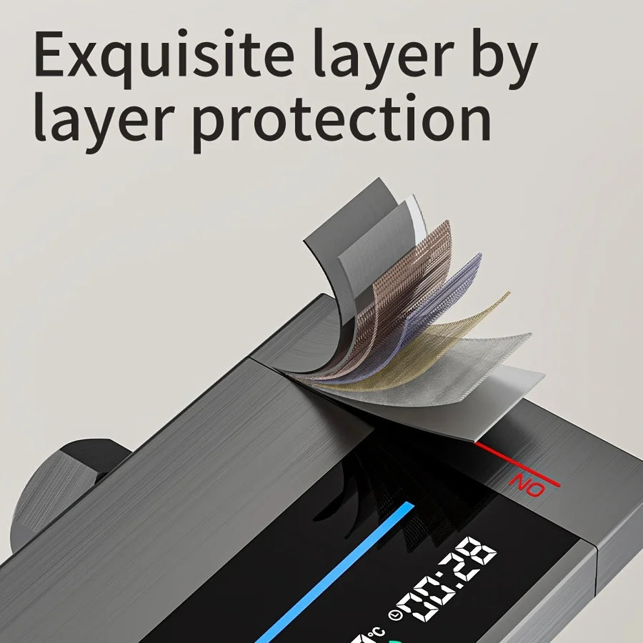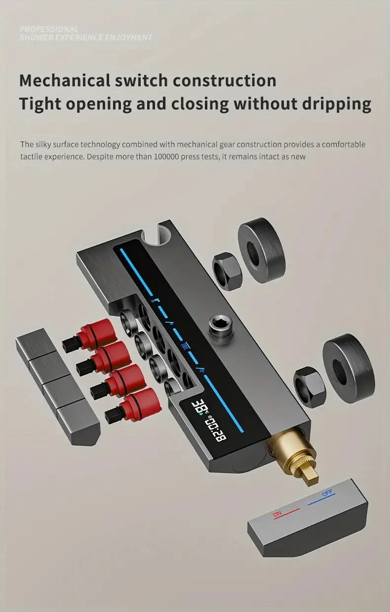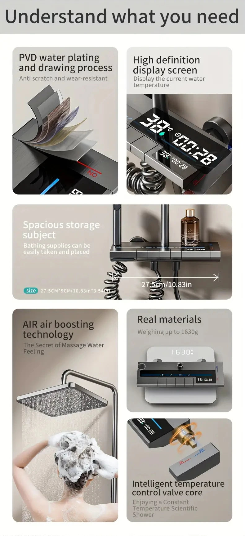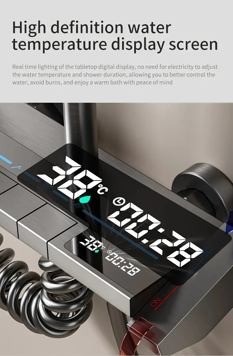 Bathroom Luxury Shower System with Tempered Glass Piano Key Smart Digital Display Thermostat Mixer Shower Faucet Full Set