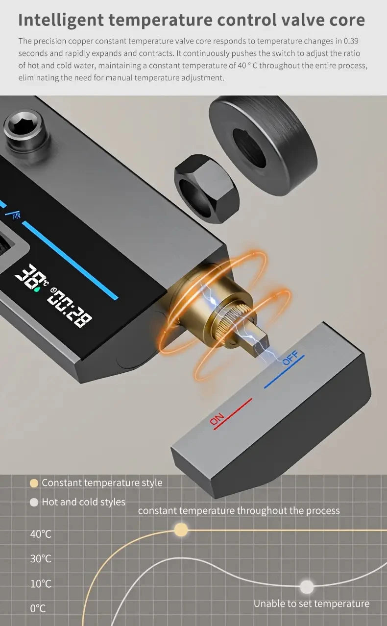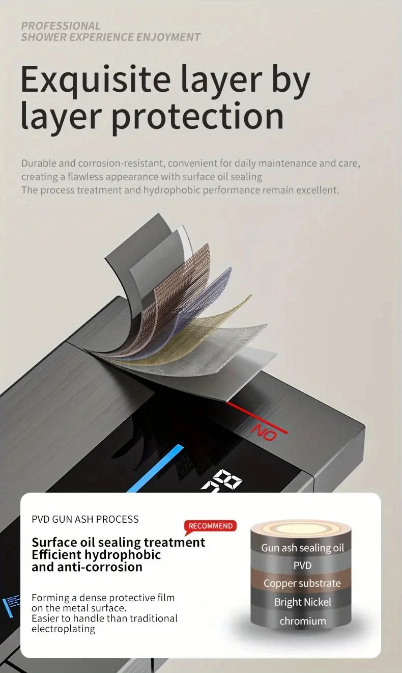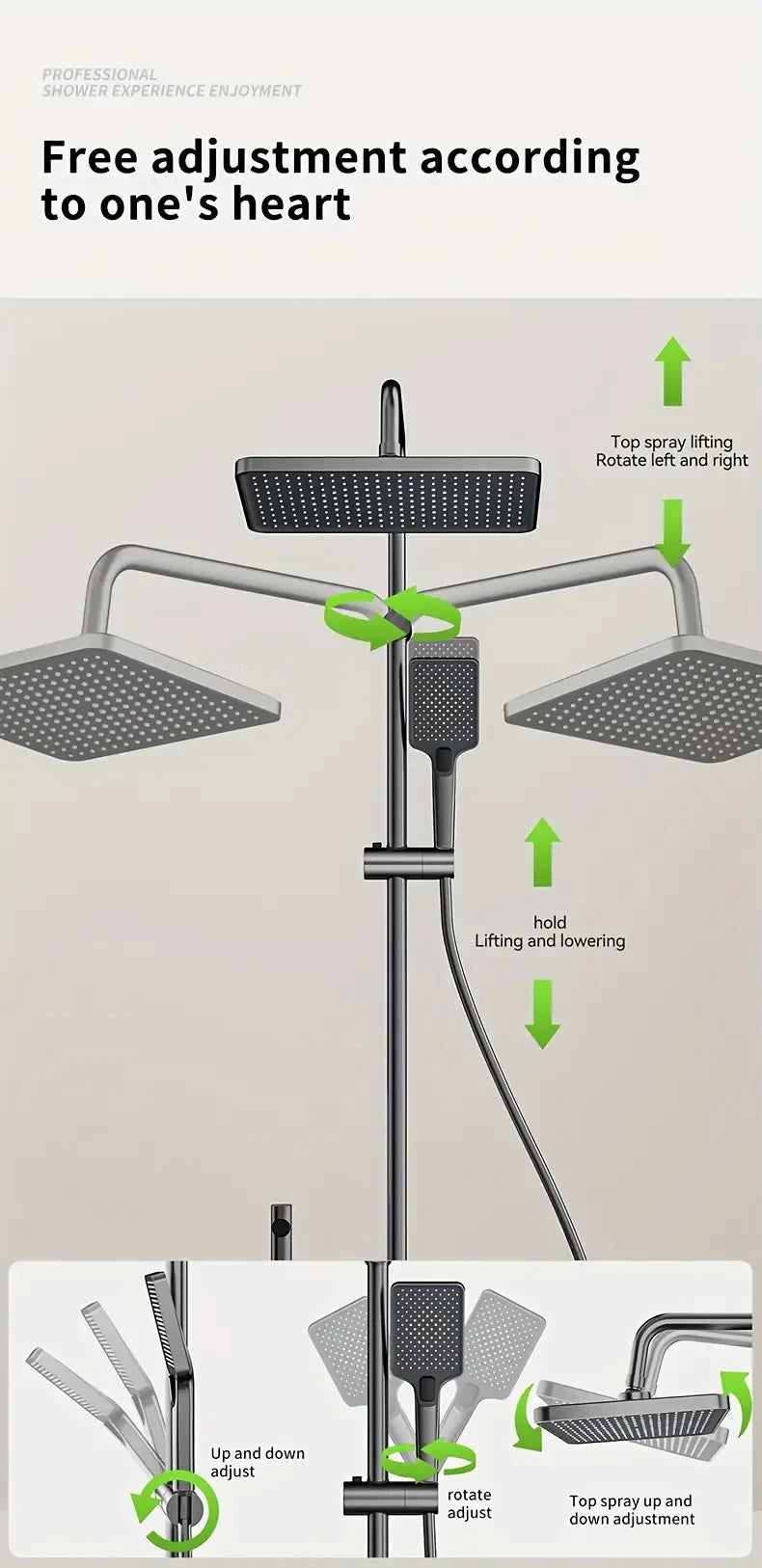 Bathroom Luxury Shower System with Tempered Glass Piano Key Smart Digital Display Thermostat Mixer Shower Faucet Full Set