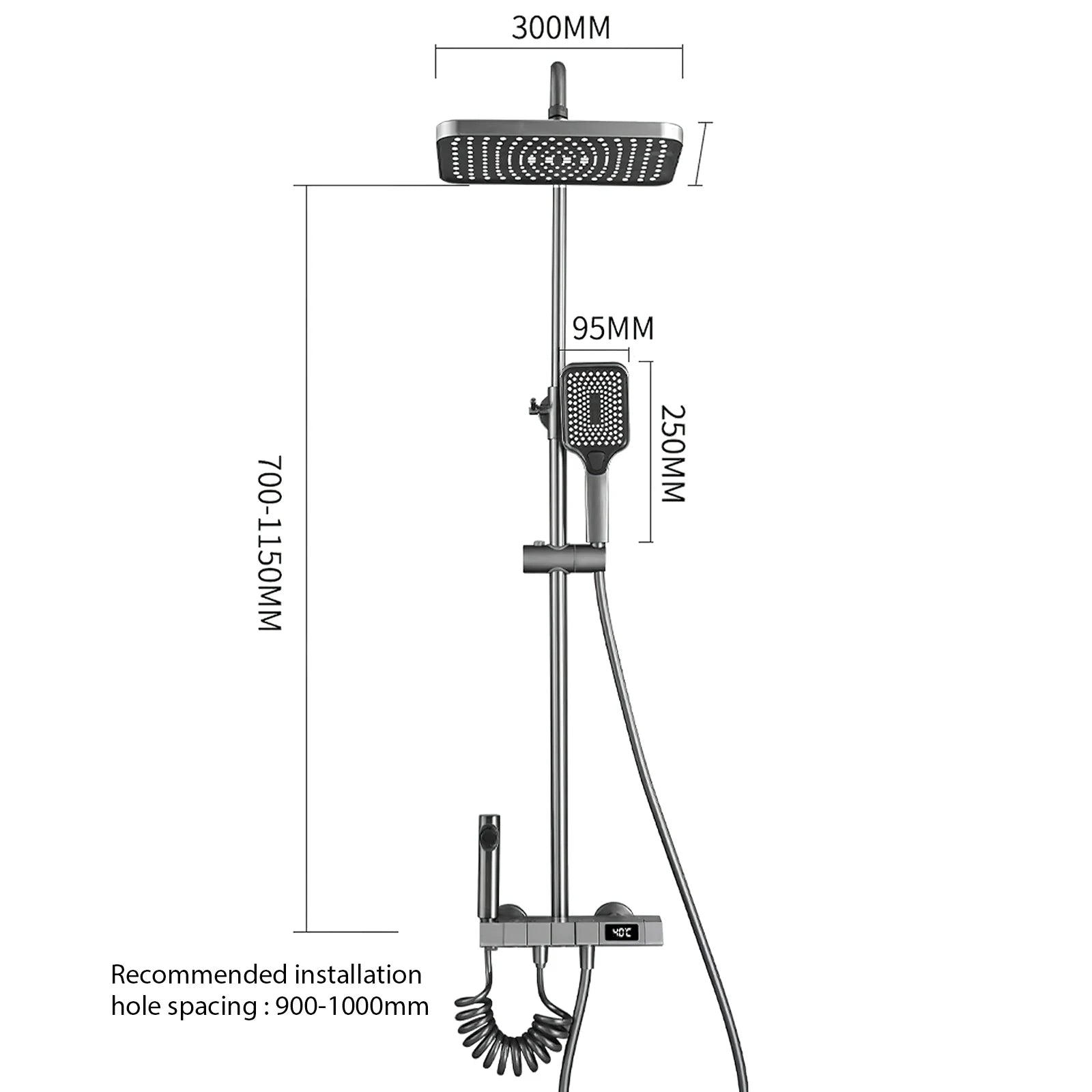 Bathroom Shower Faucet Set 4 Functions Digital Display Shower Thermostat Hot Cold Showers Mixer Pressure Discharge Copper Taps