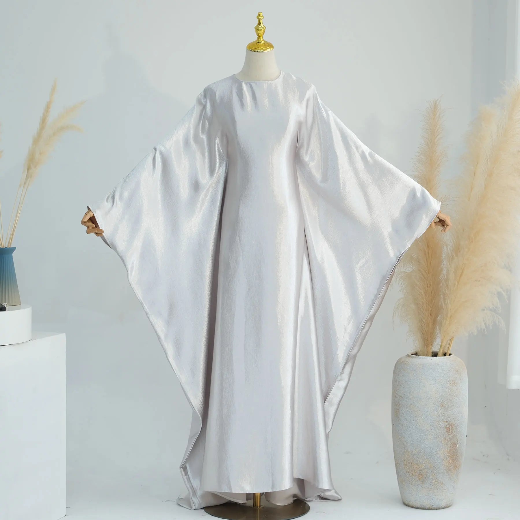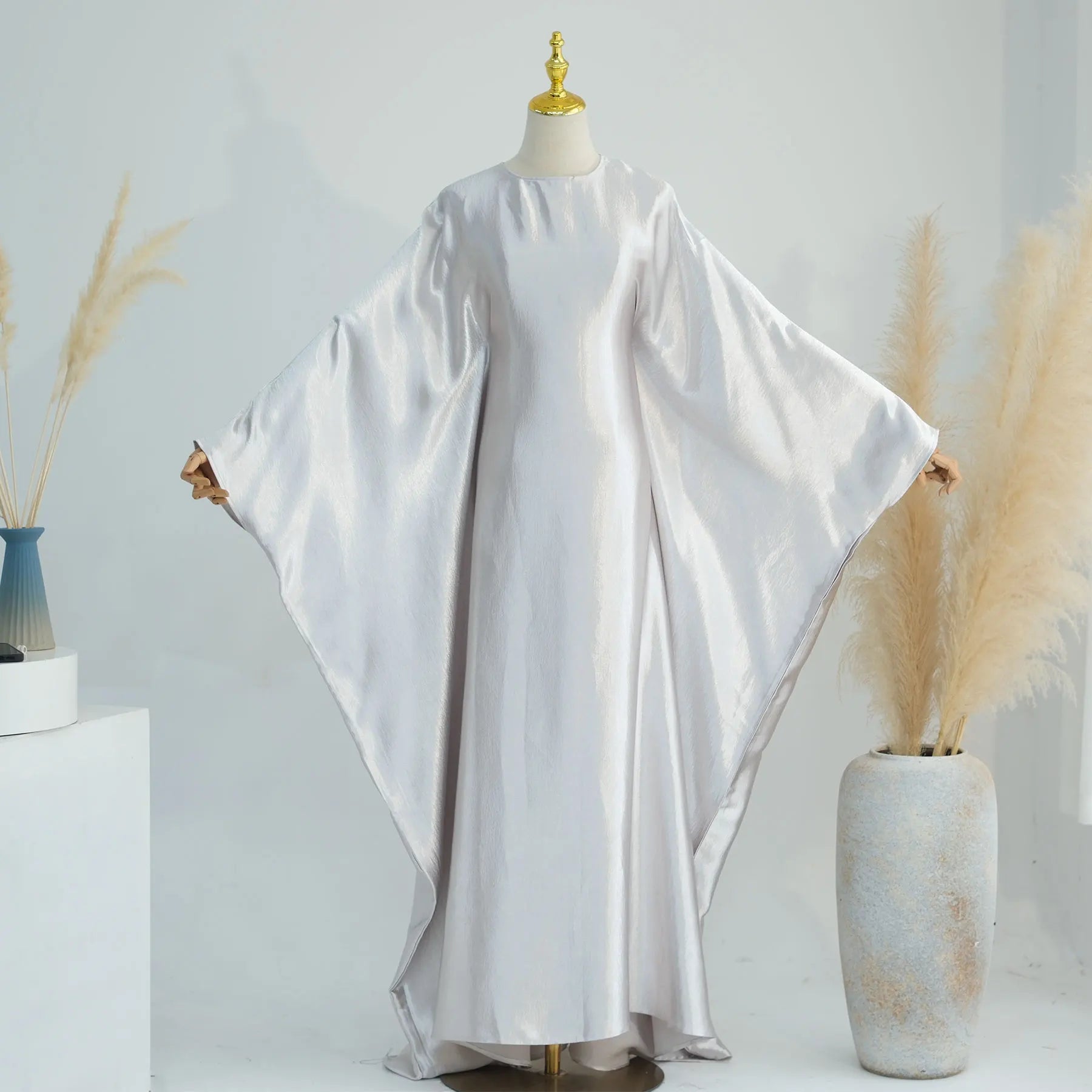 Batwing Satin Shimmer Abaya Damen Dubai Luxury Islam Muslim Kaftan Dress Women Kebaya Vestidos Djellaba Robe Femme Musulmane