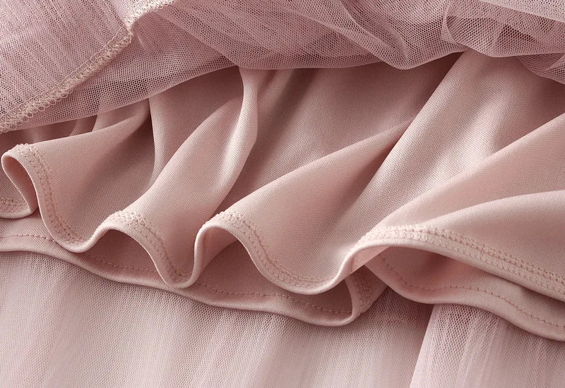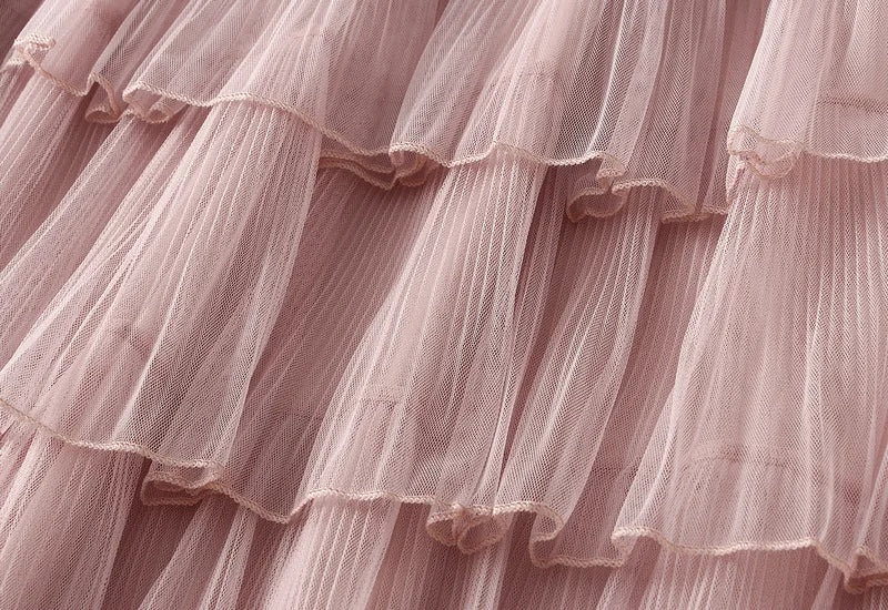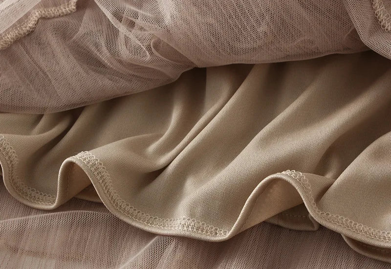 Beiyingni Woman Mesh Long Midi Cake Skirt Solid Color Elegant French Tiered Fairy Tulle Skirts Khaki Casual High Waist Faldas