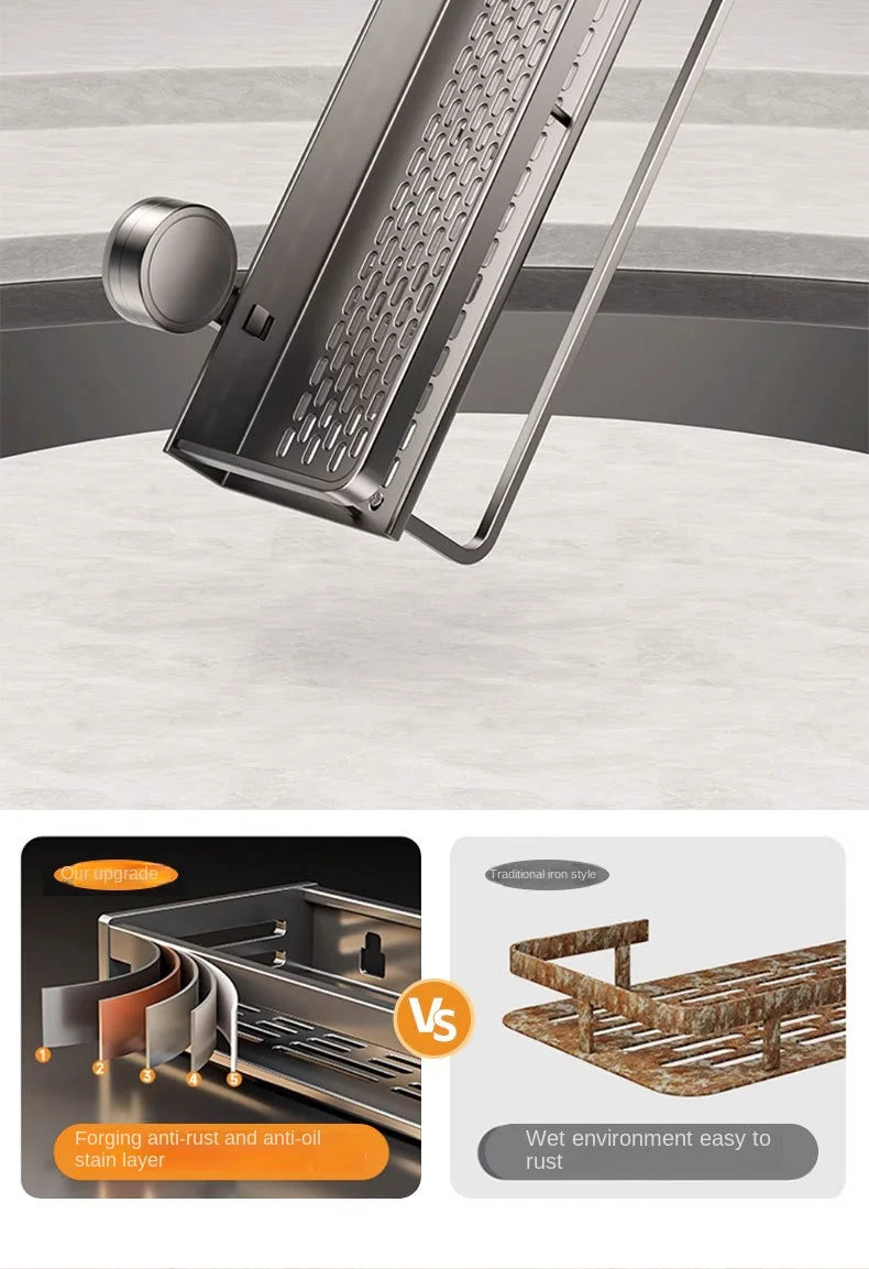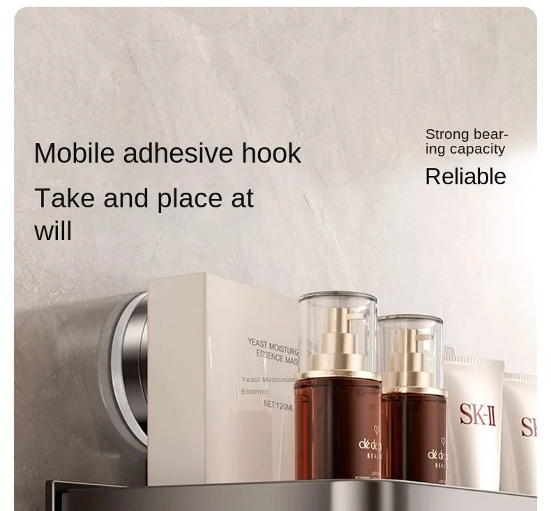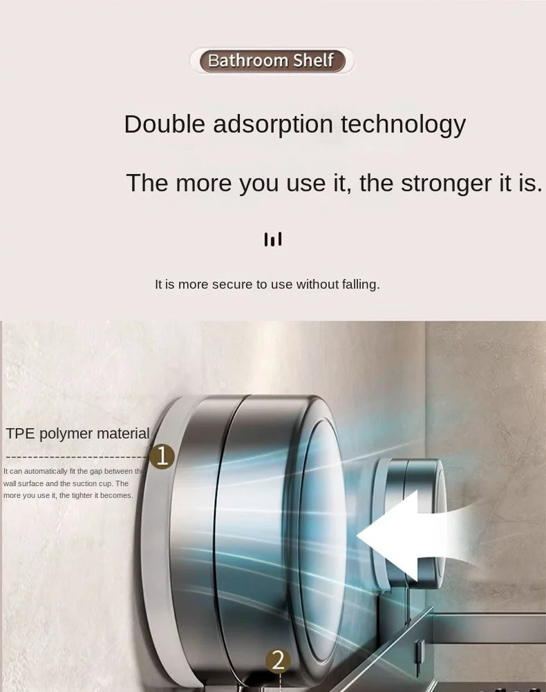 Bewegliches Badezimmerregal ohne Bohren – 30/40/50 cm Saugnapf-Organizer mit Haken/Stange, einfach zu installieren und zu reinigen, wasserdichtes Toilettenregal