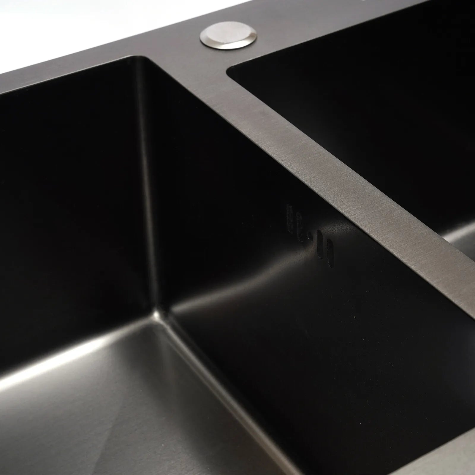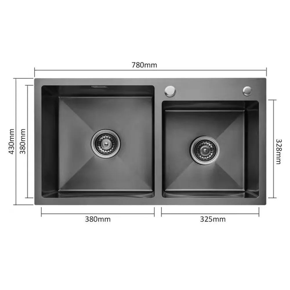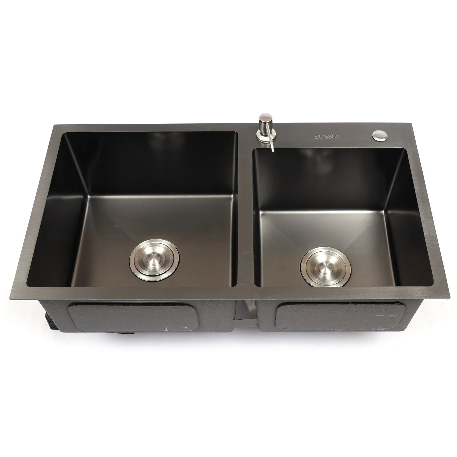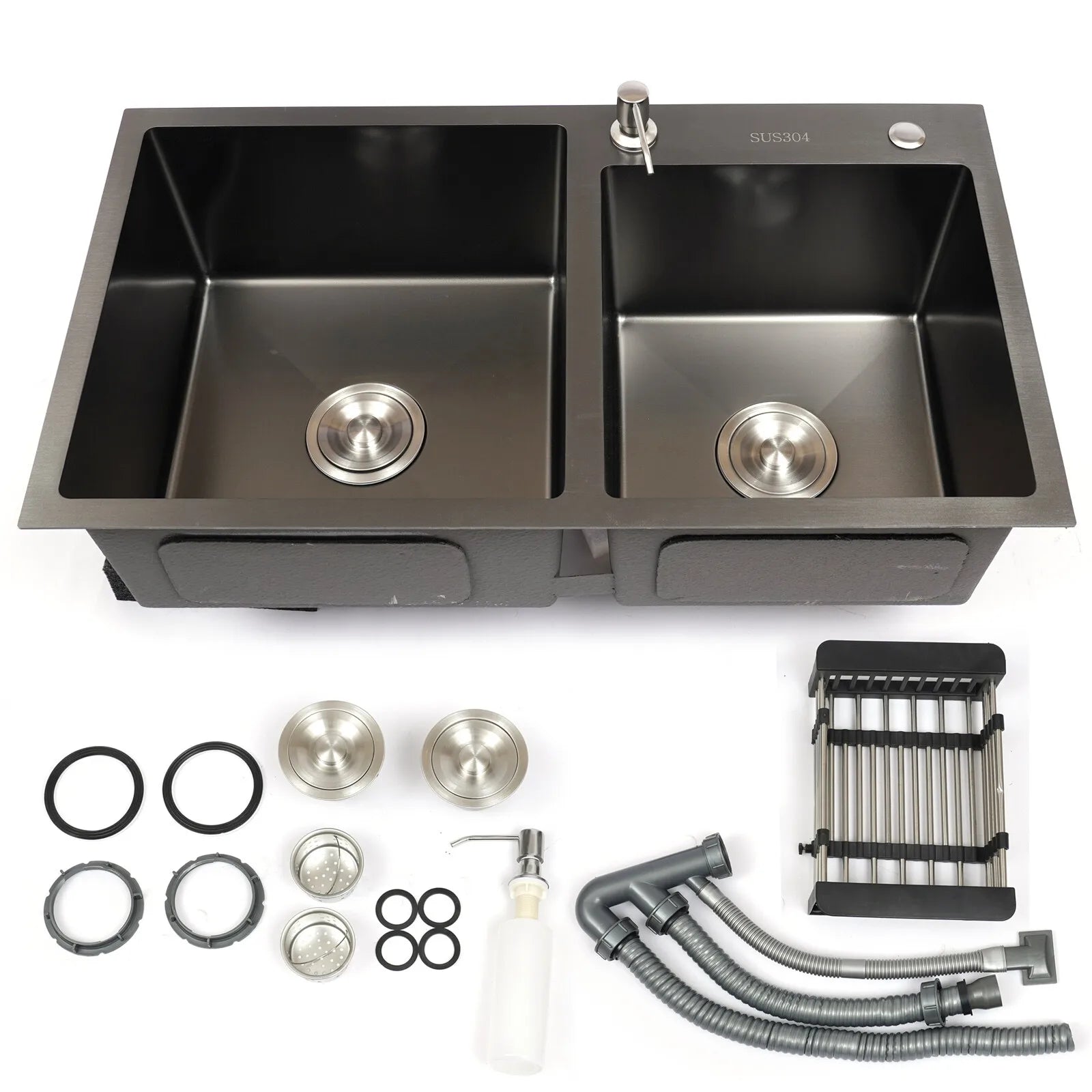 Black King Edelstahl Doppelschüssel Küchenspüle Inset Korb Abtropffläche Seifenspender