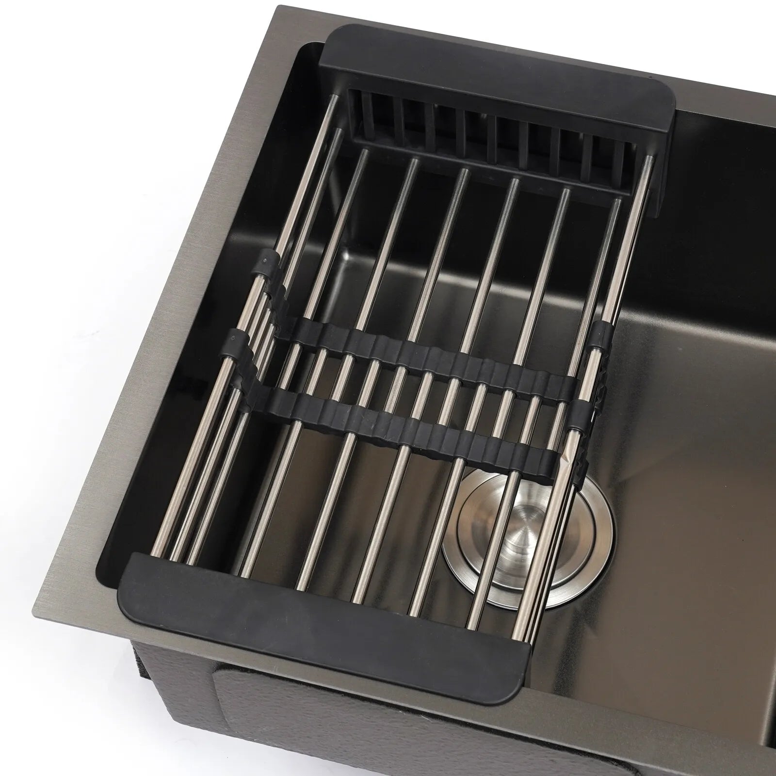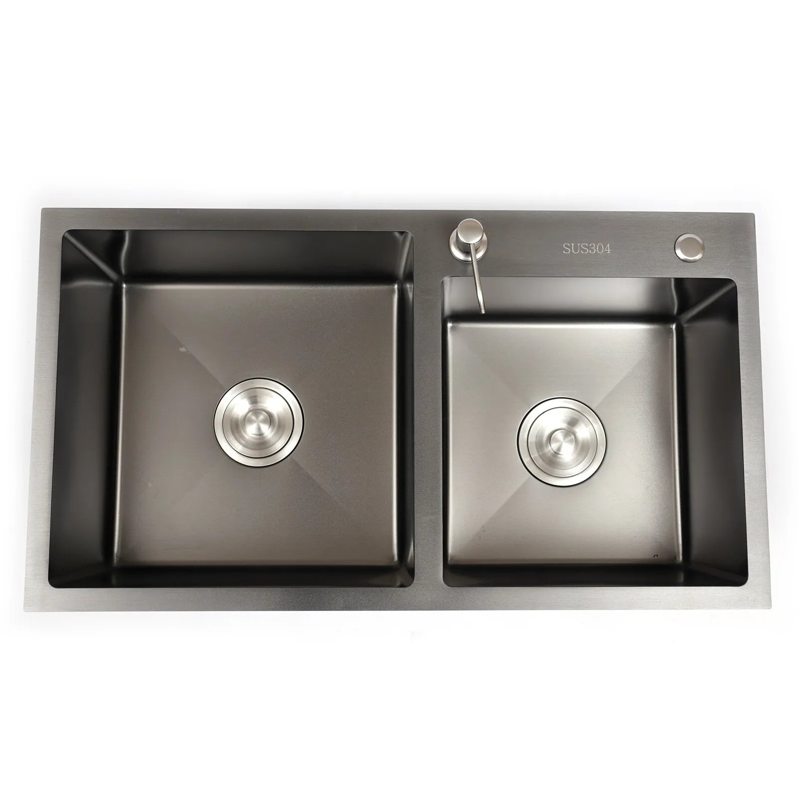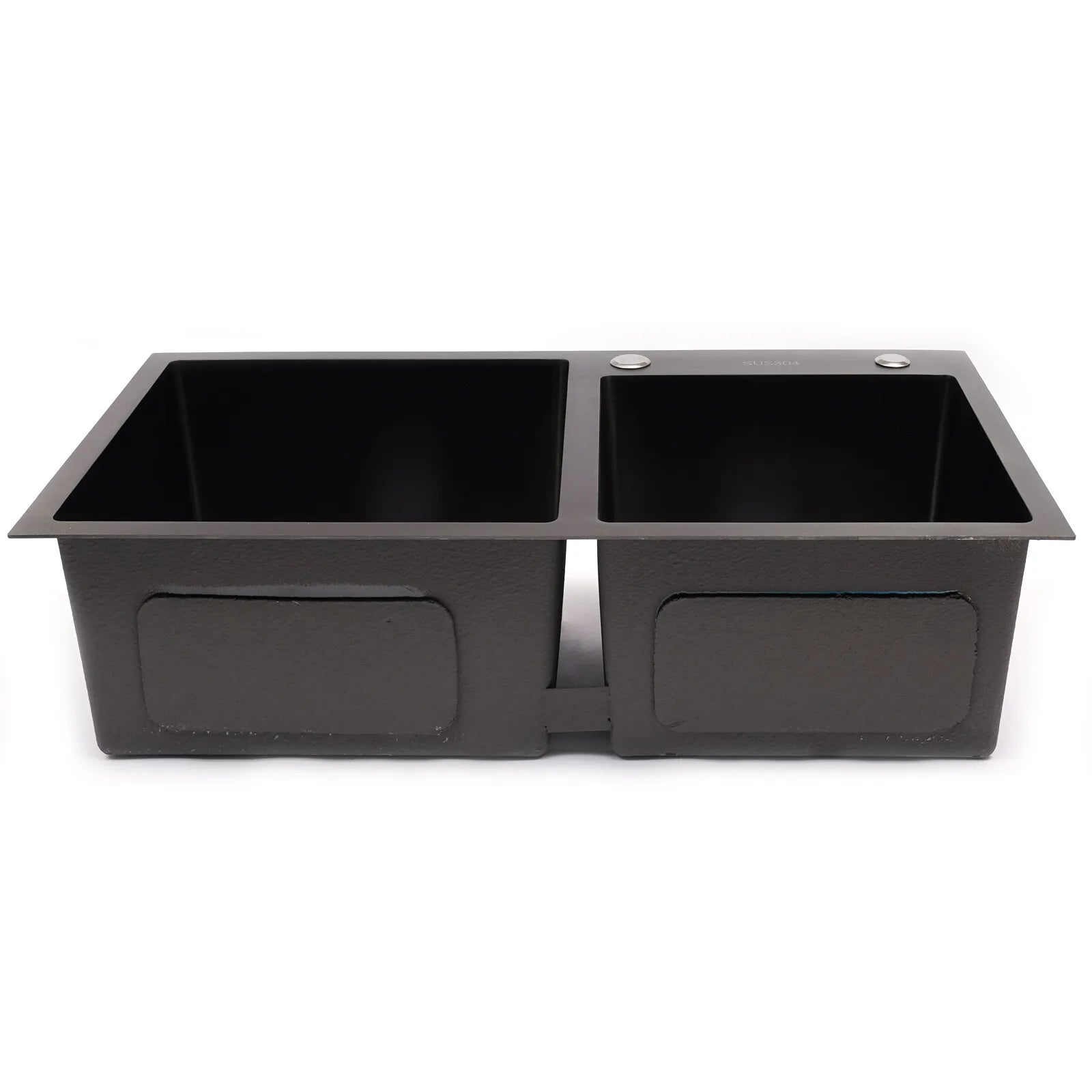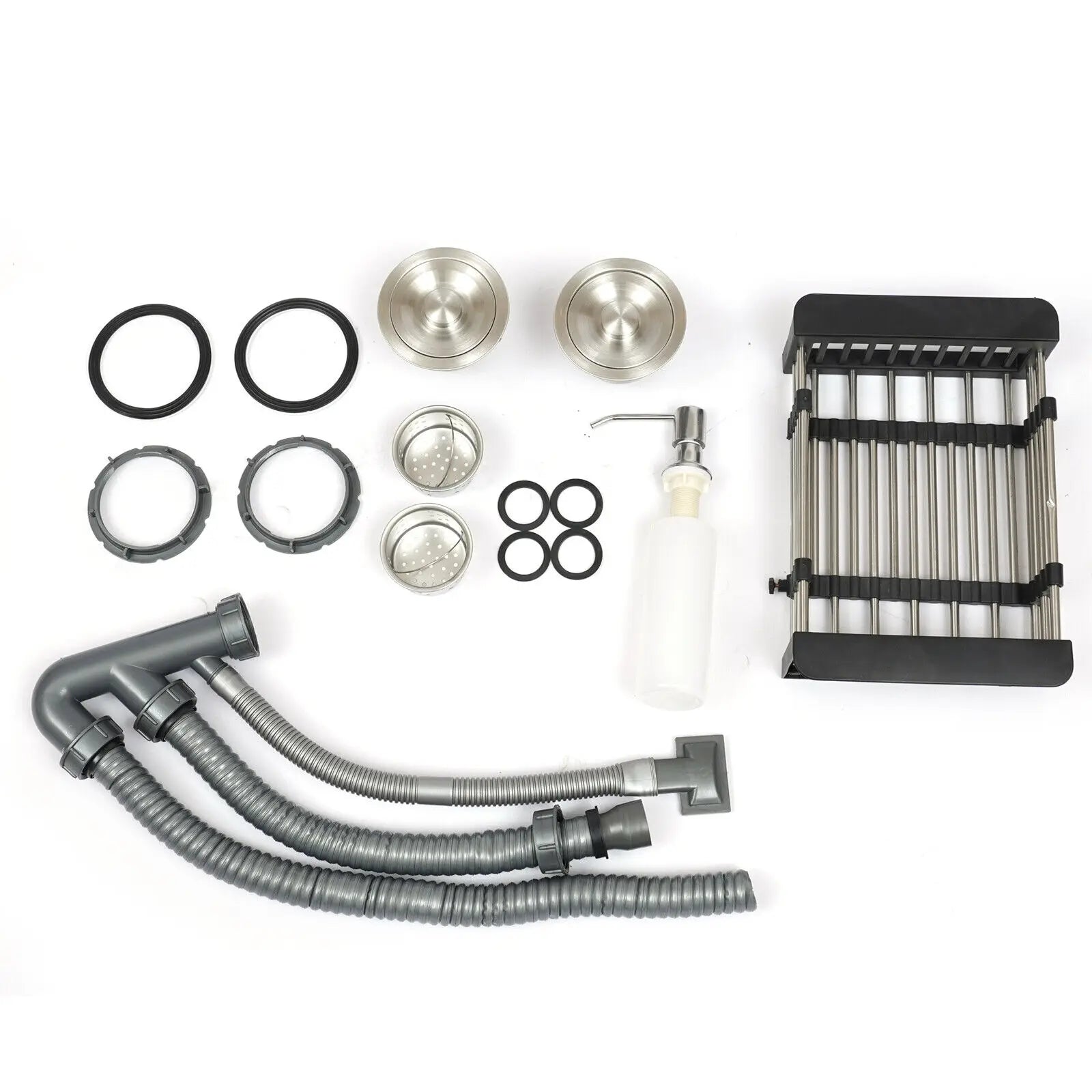 Black King Edelstahl Doppelschüssel Küchenspüle Inset Korb Abtropffläche Seifenspender