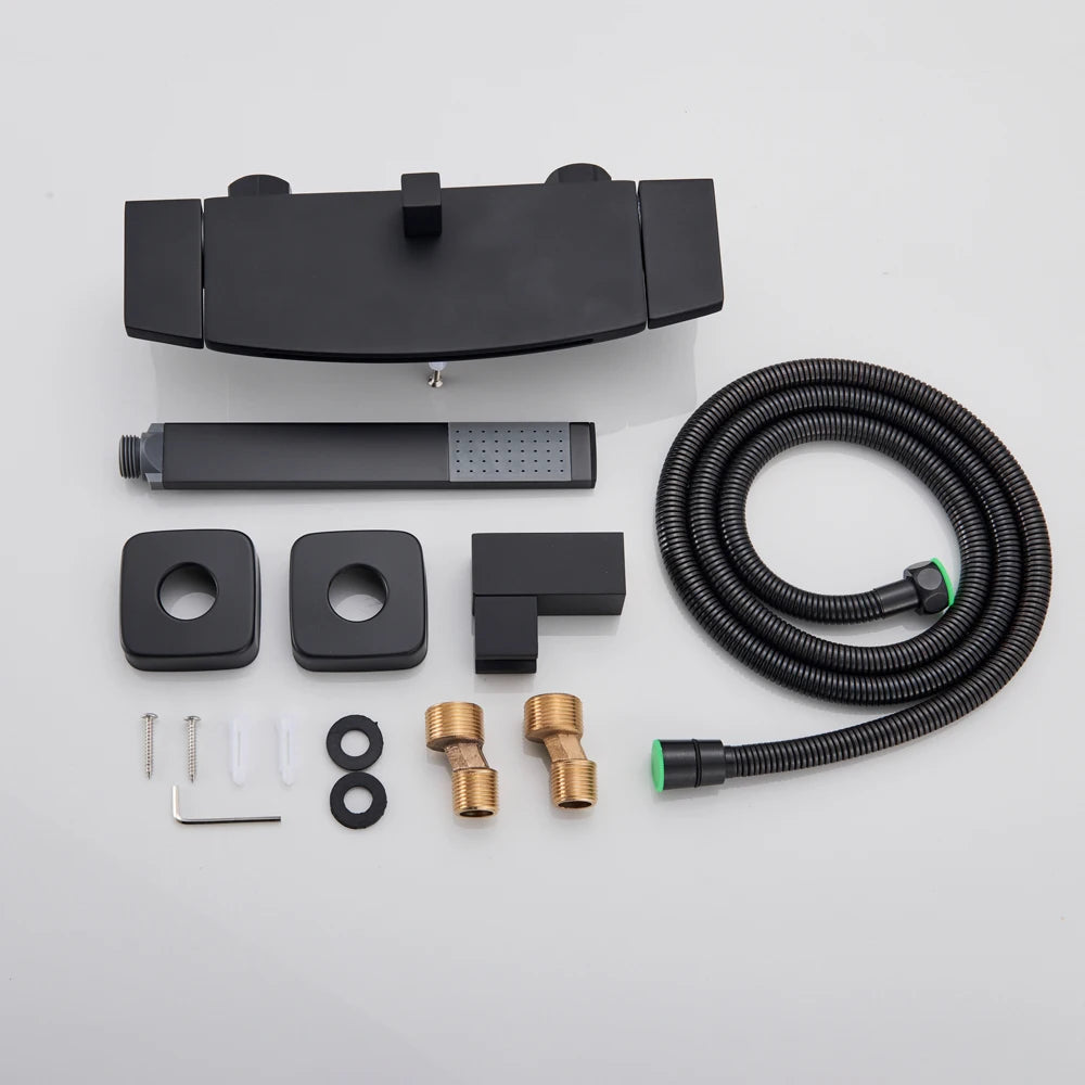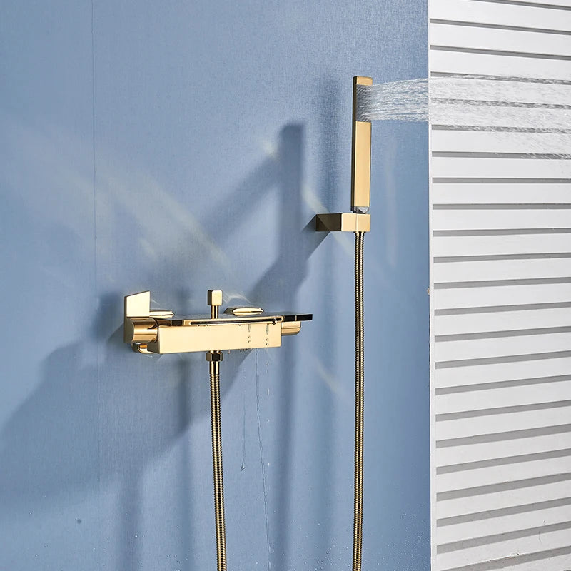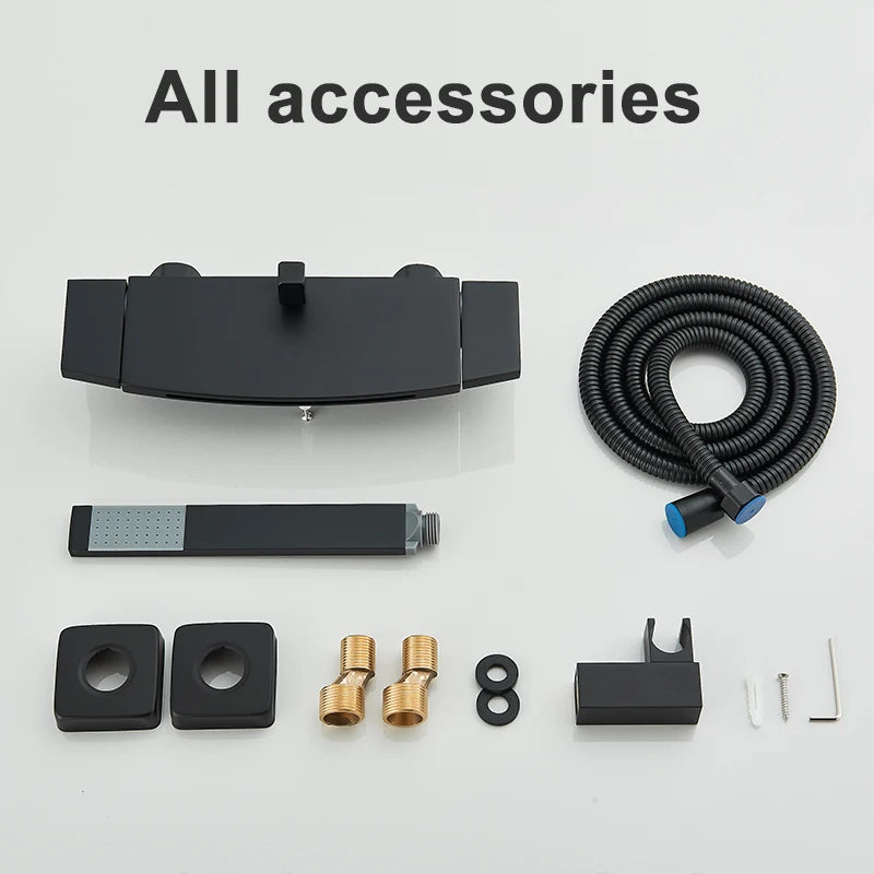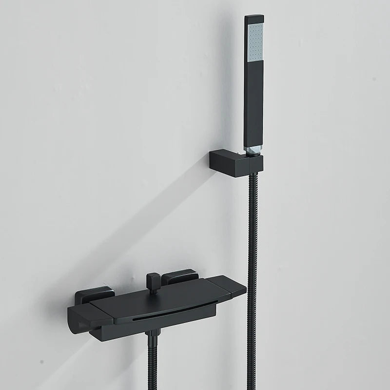 Black Waterfall Shower Faucet Bathroom Wall Mounted Bathtub Shower Faucets Dual Handles Hot Cold Water Mixer Tap with Handshower
