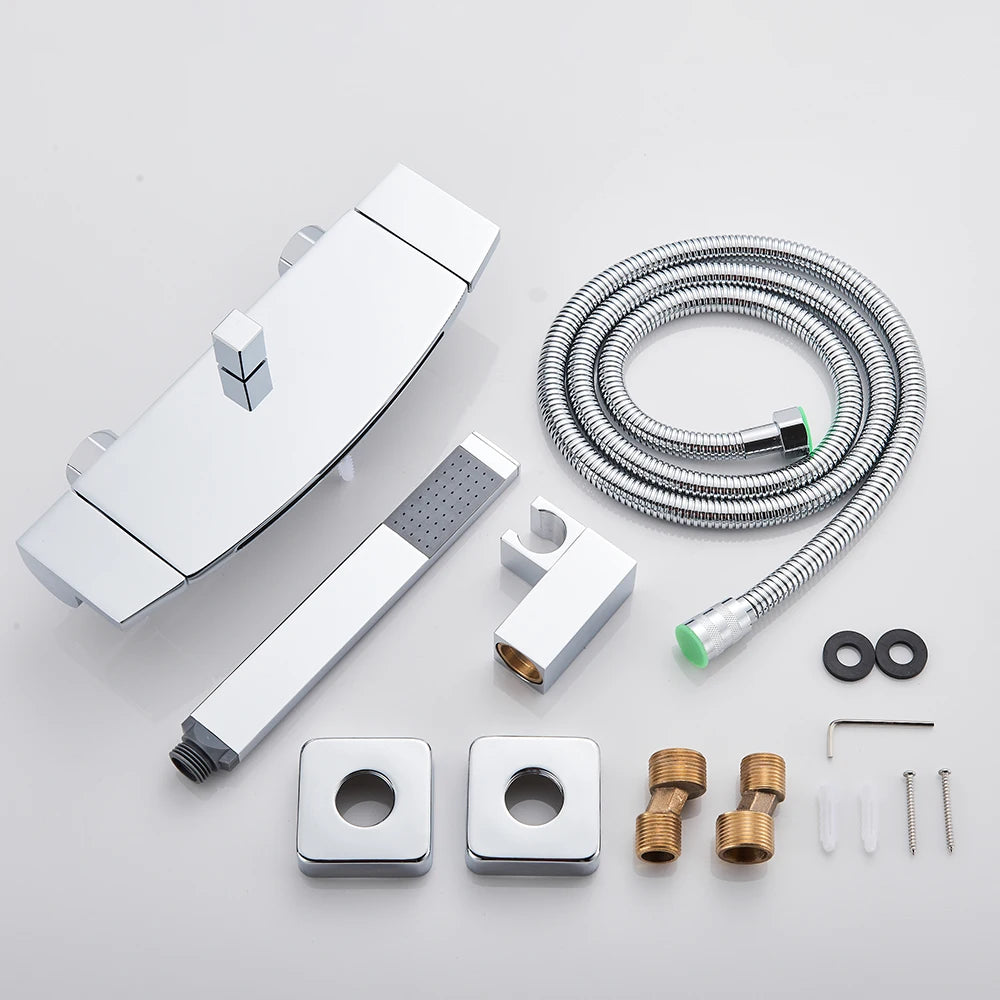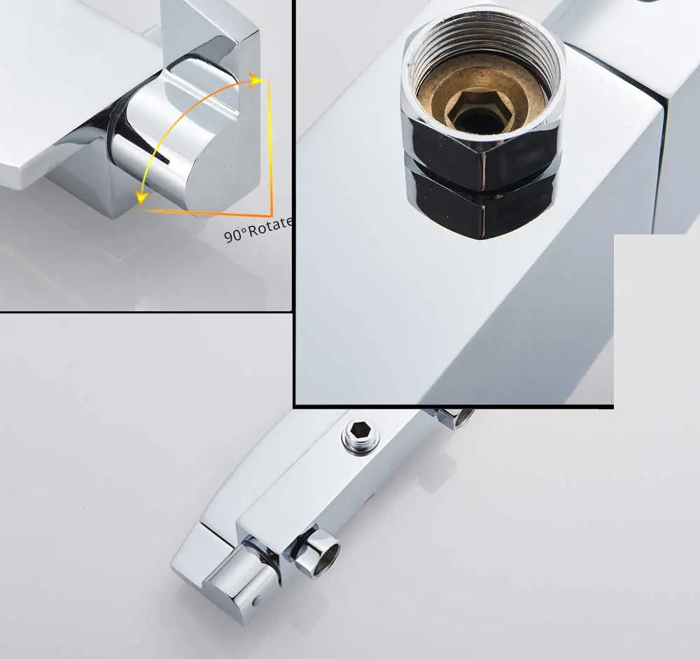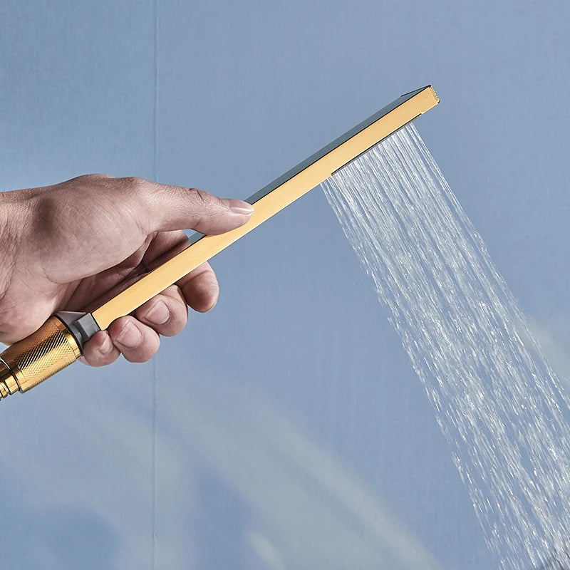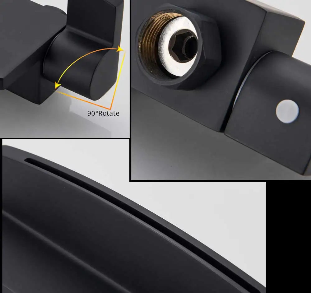 Black Waterfall Shower Faucet Bathroom Wall Mounted Bathtub Shower Faucets Dual Handles Hot Cold Water Mixer Tap with Handshower
