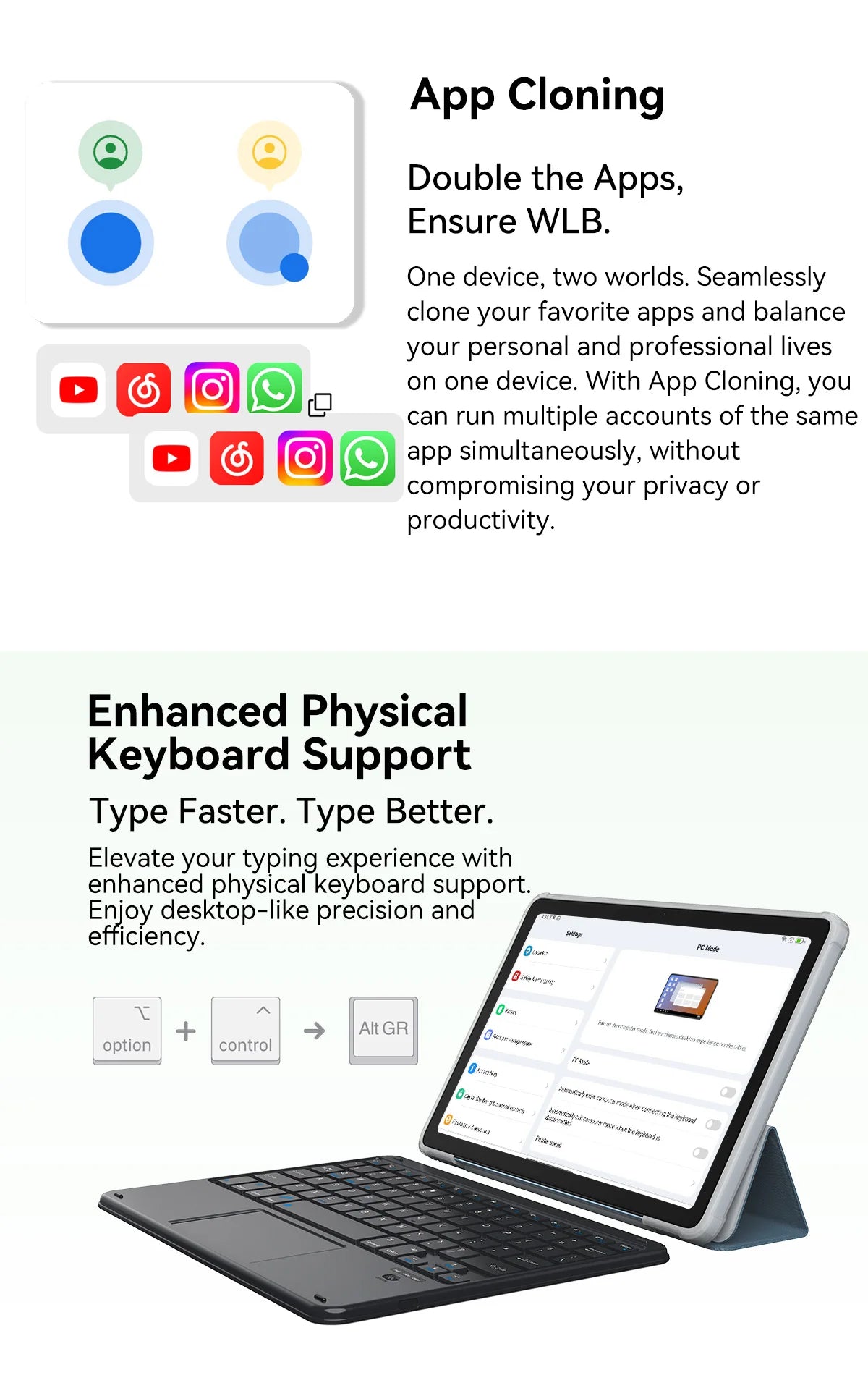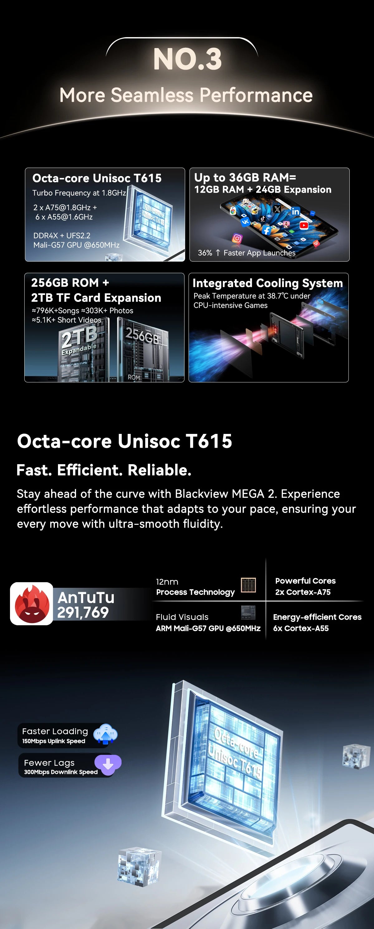 Blackview MEGA 2 Android 15 Tablet 12 inch 2K Display 36(12+24)GB 256GB Unisoc T615 9000mAh Battery Widevine L1 Pad PC