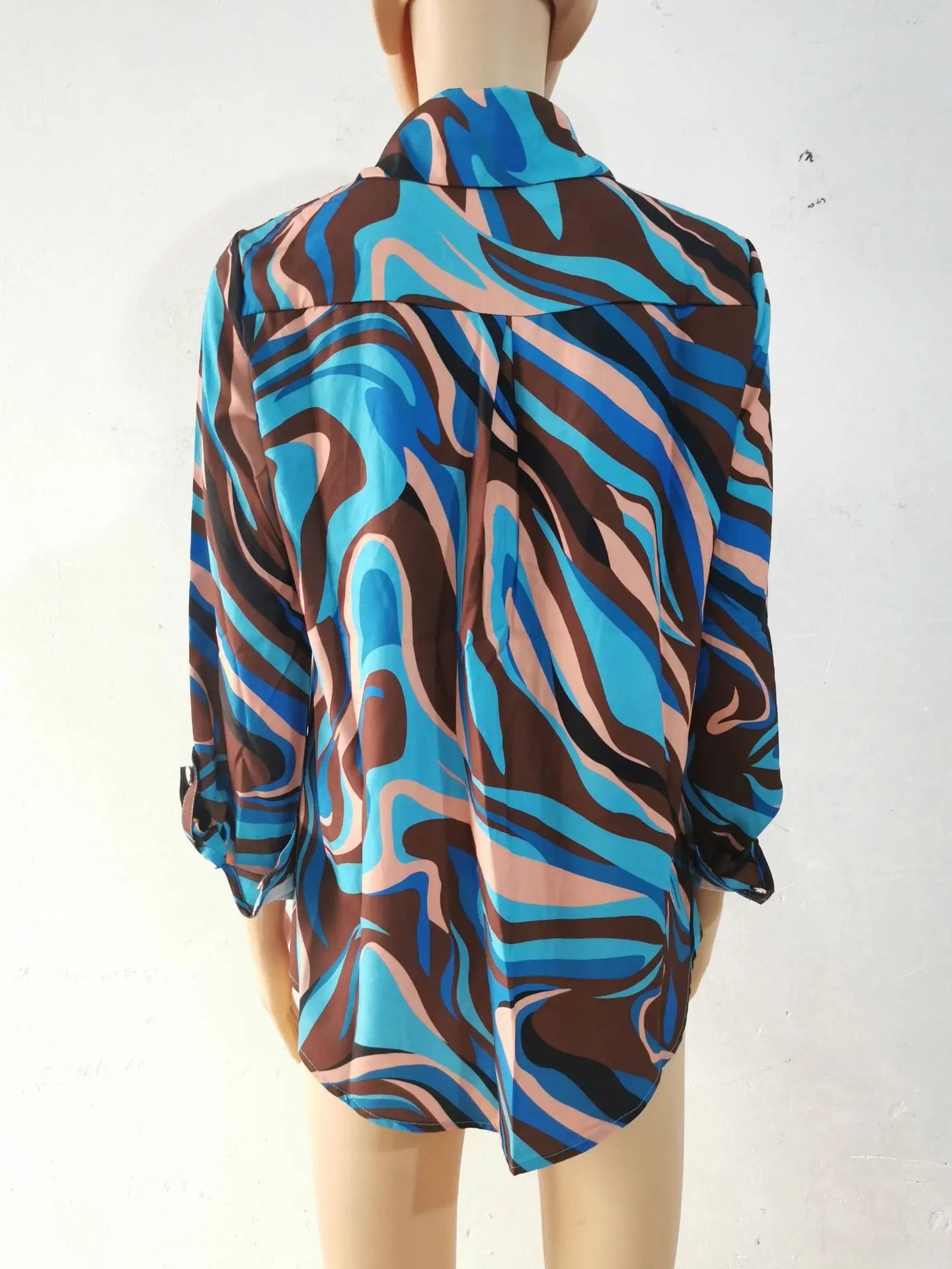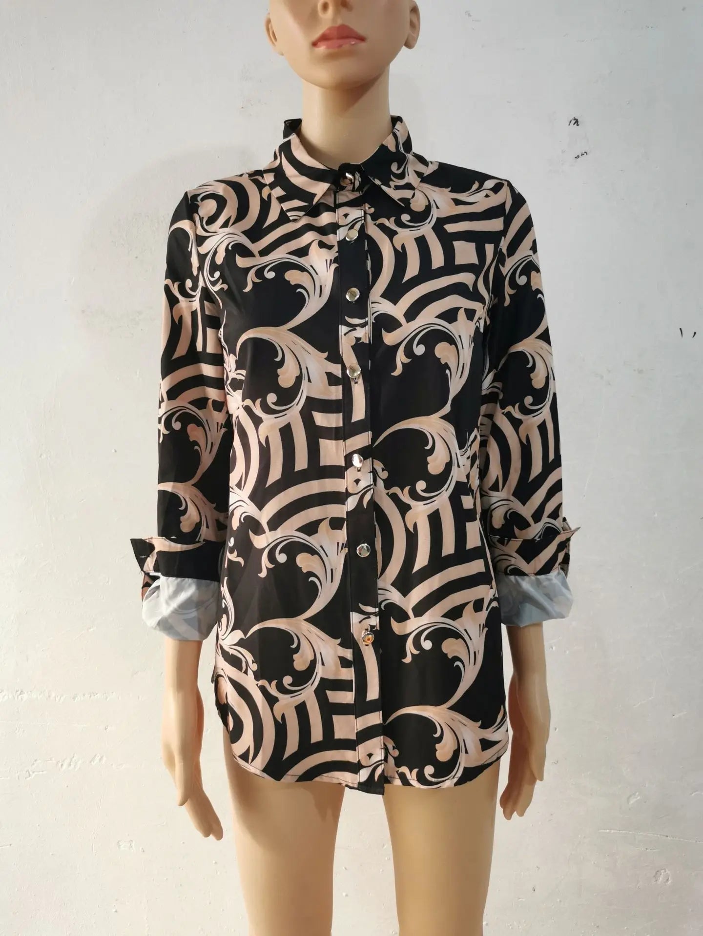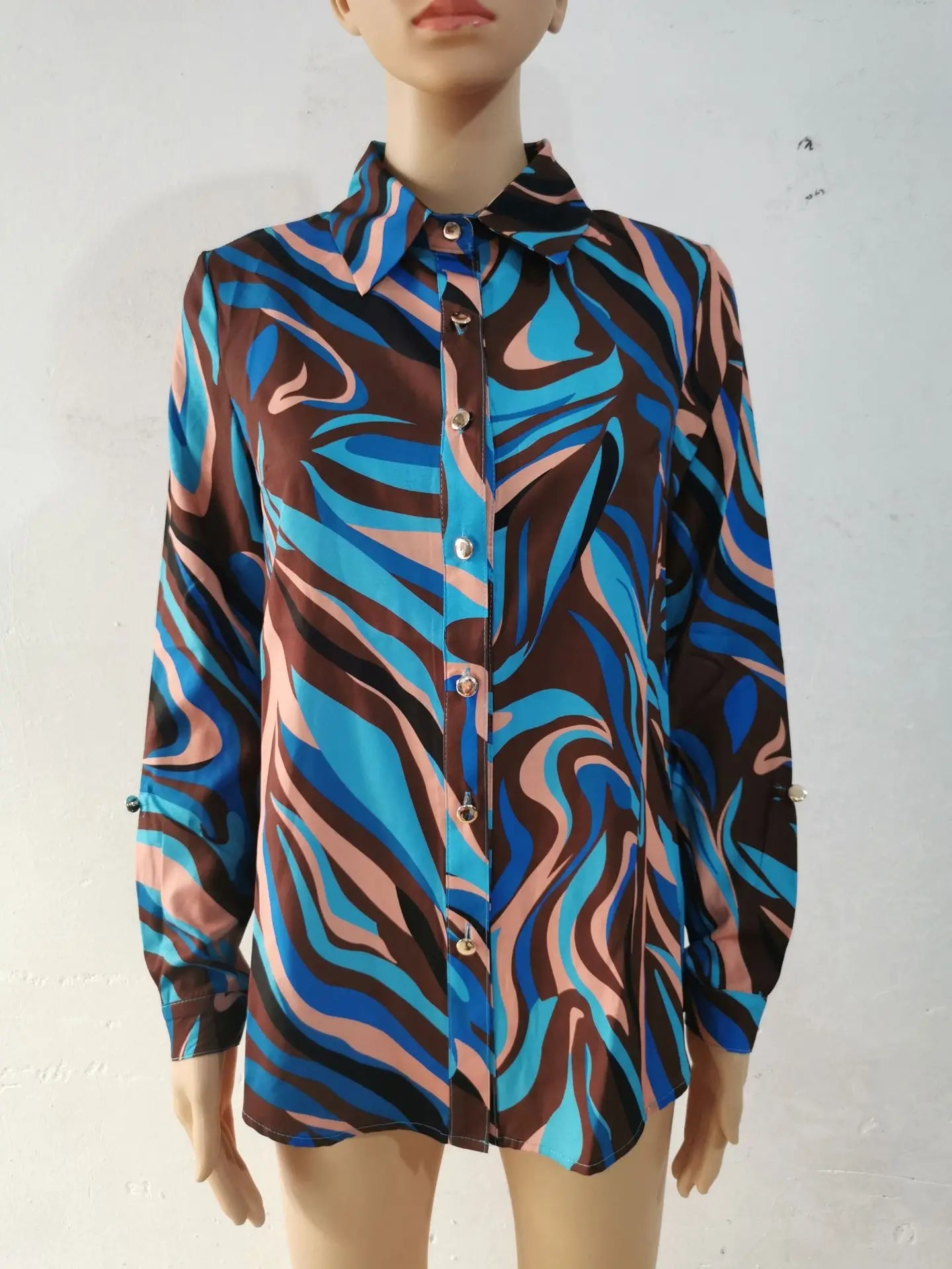 Blue Women's Long-sleeved Shirt, Single-breasted Collar Commuter Shirts, White and Black Slim-fit Top