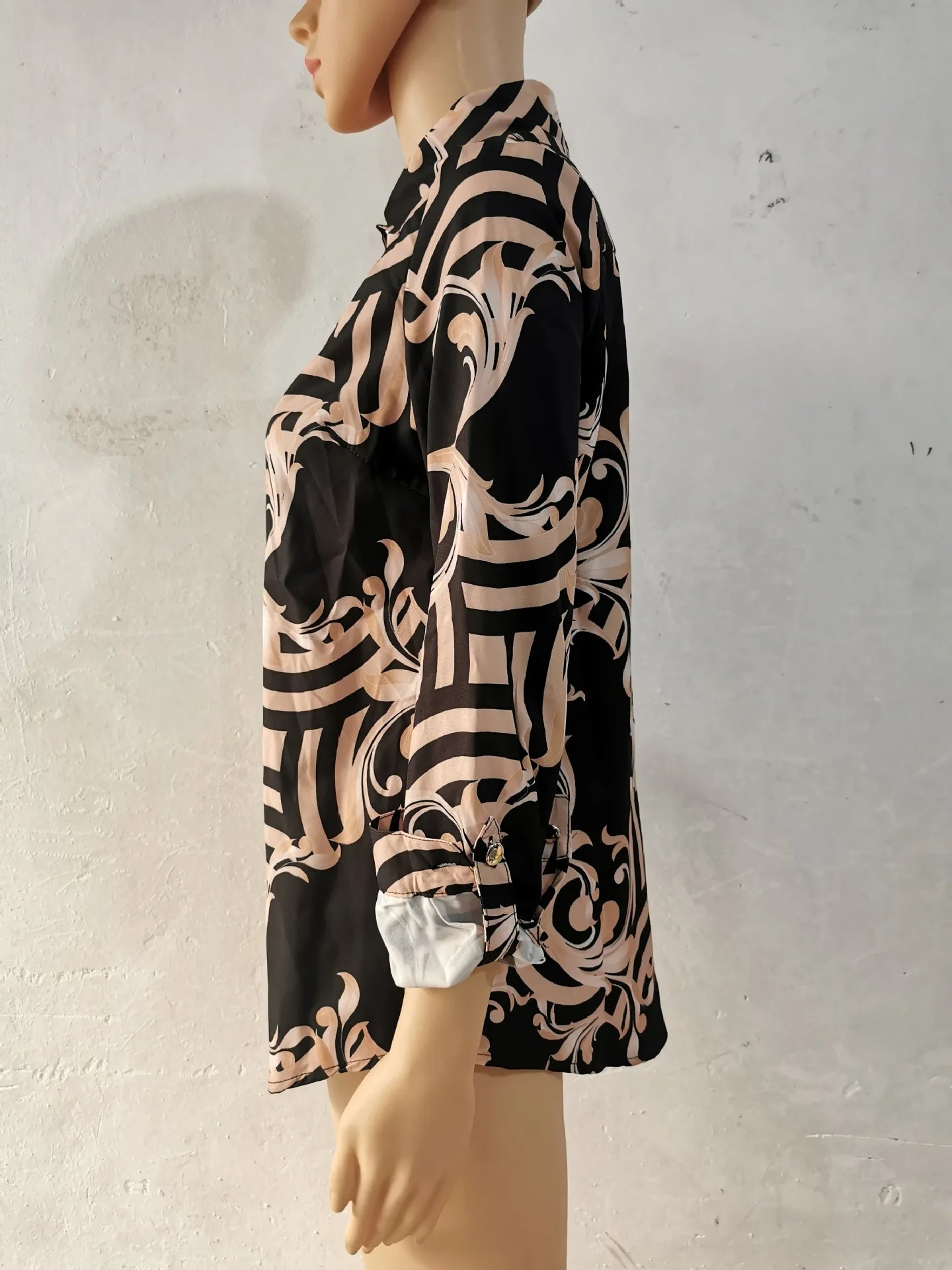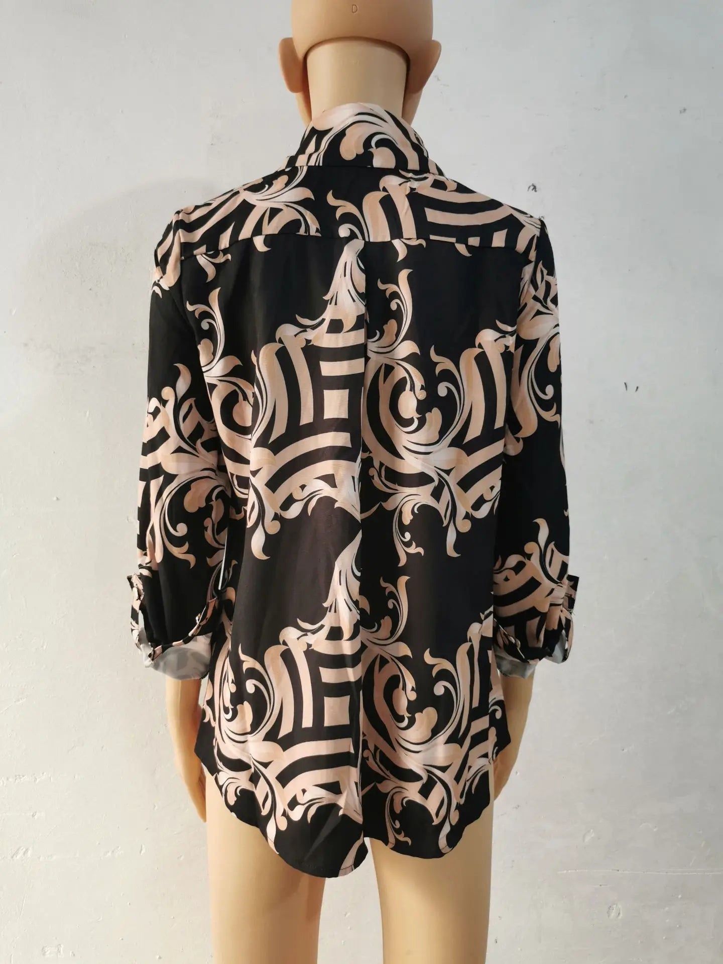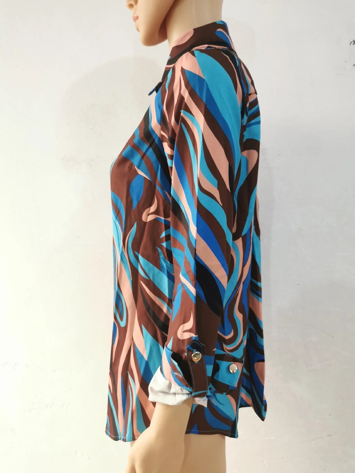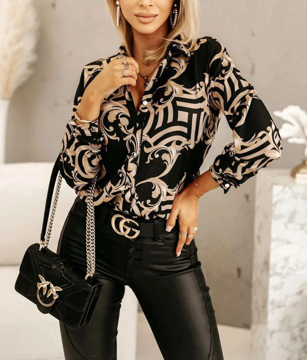 Blue Women's Long-sleeved Shirt, Single-breasted Collar Commuter Shirts, White and Black Slim-fit Top