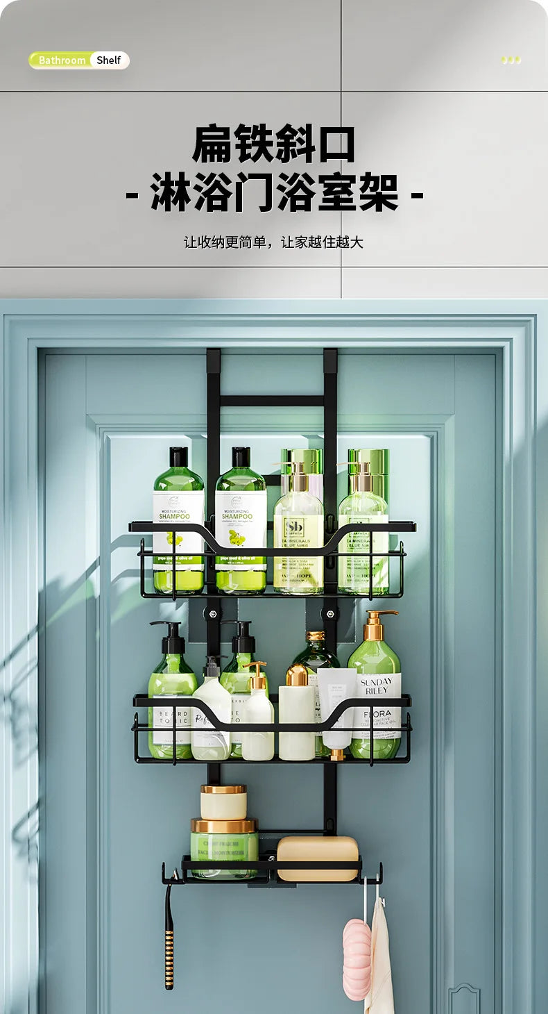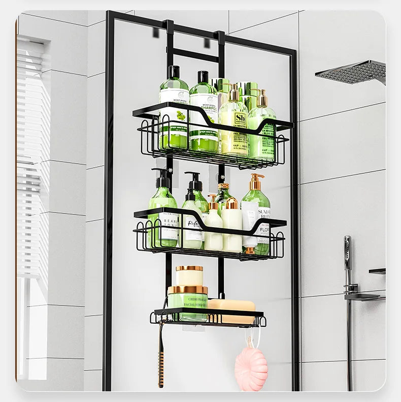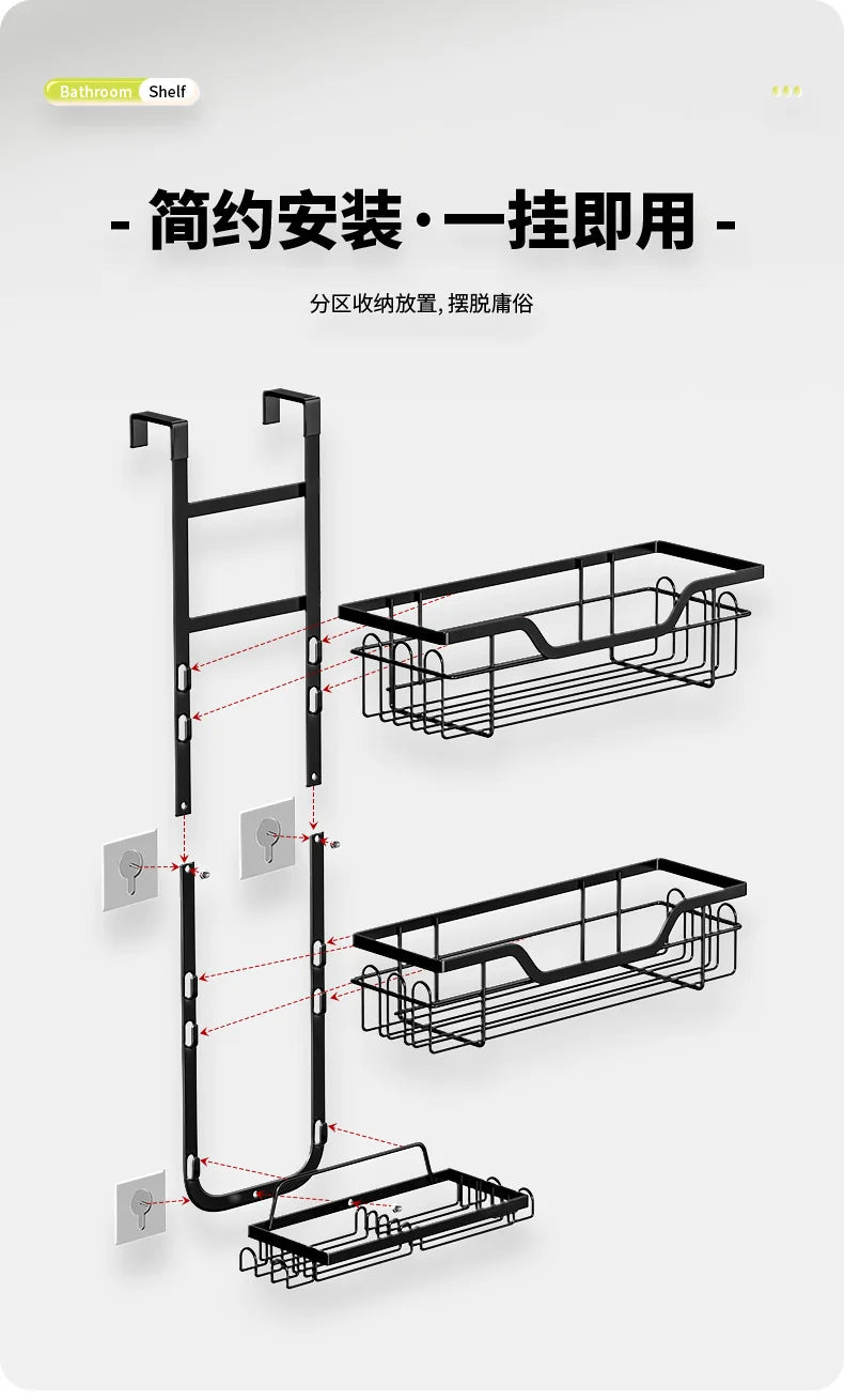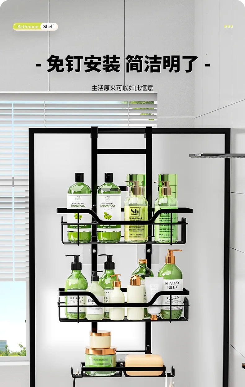 Bohrfreies Badezimmerregal über der Tür, hängender Organizer, wandmontiertes Korbregal, mehrschichtiges Duschraum-Aufbewahrungsregal für Toilette