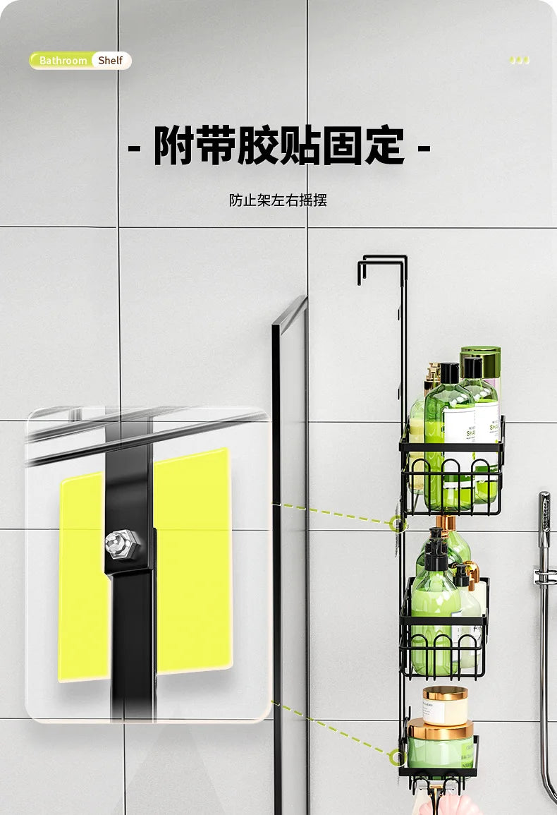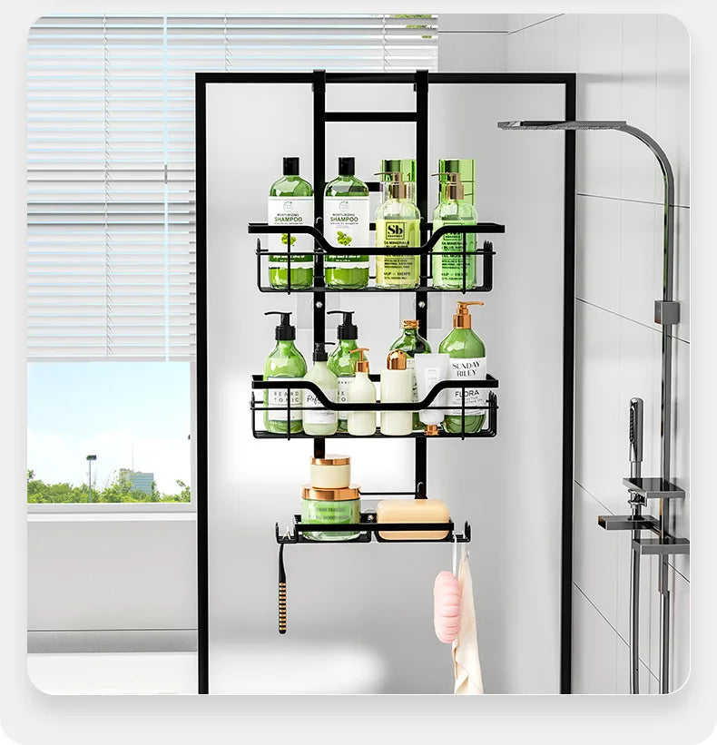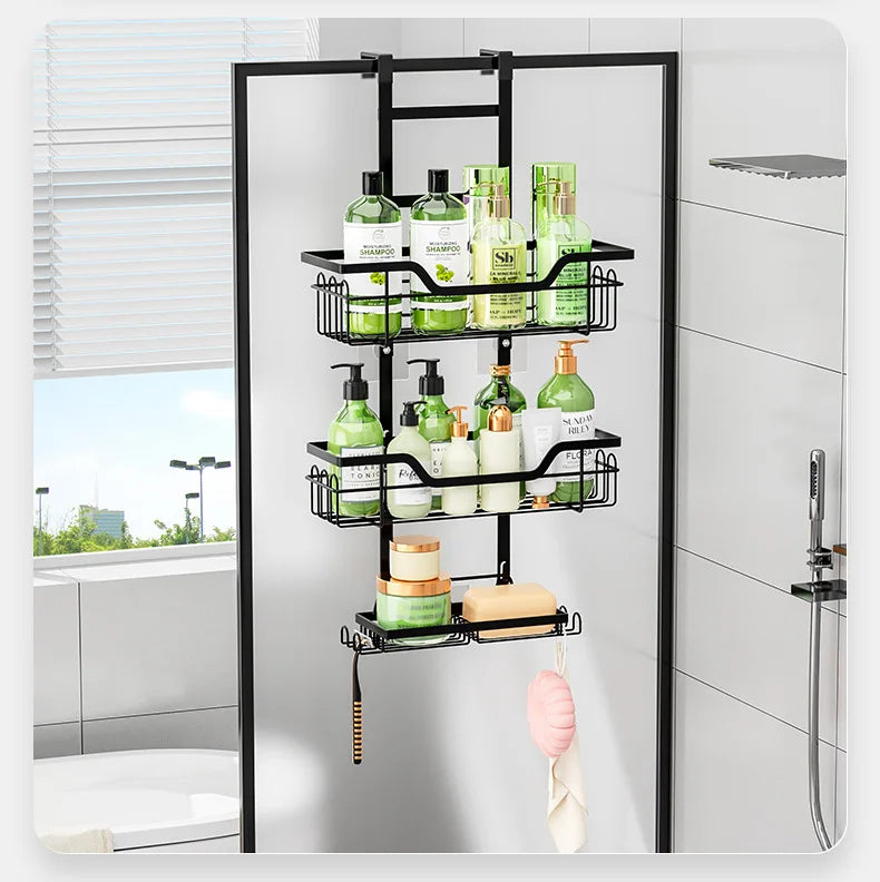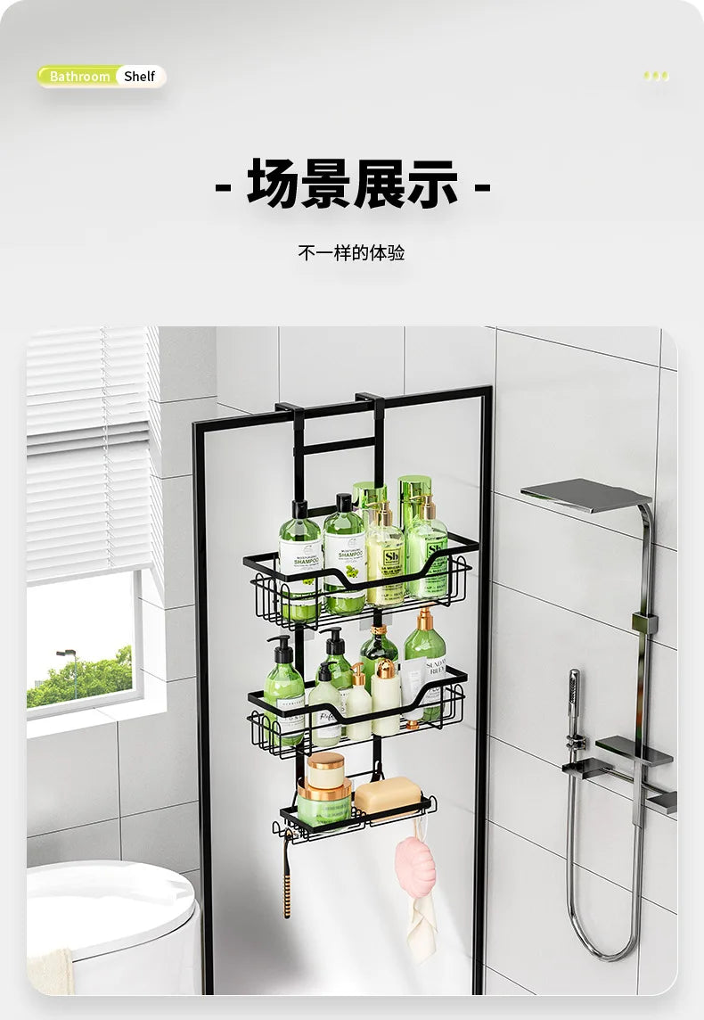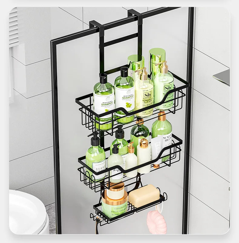 Bohrfreies Badezimmerregal über der Tür, hängender Organizer, wandmontiertes Korbregal, mehrschichtiges Duschraum-Aufbewahrungsregal für Toilette