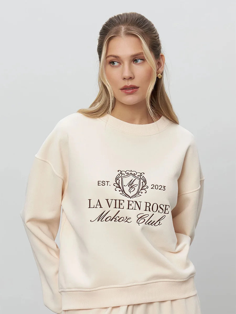 Bornladies Embroidered Hoodie Pants 2-piece Set Autumn New Casual Pants Women's O-neck Pullover Hoodie Suit
