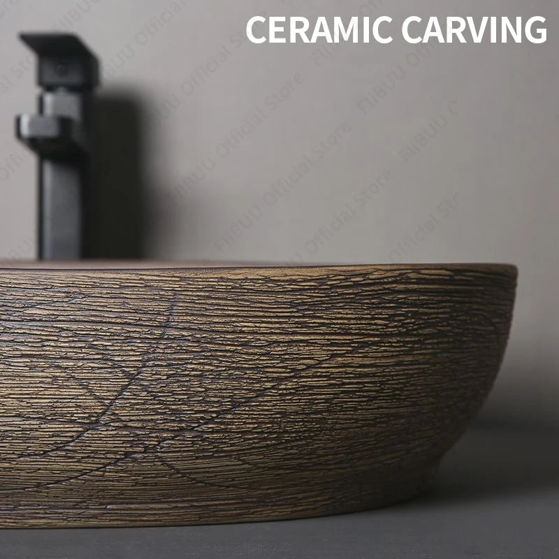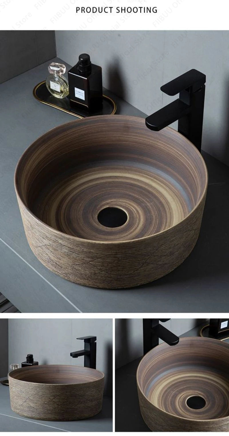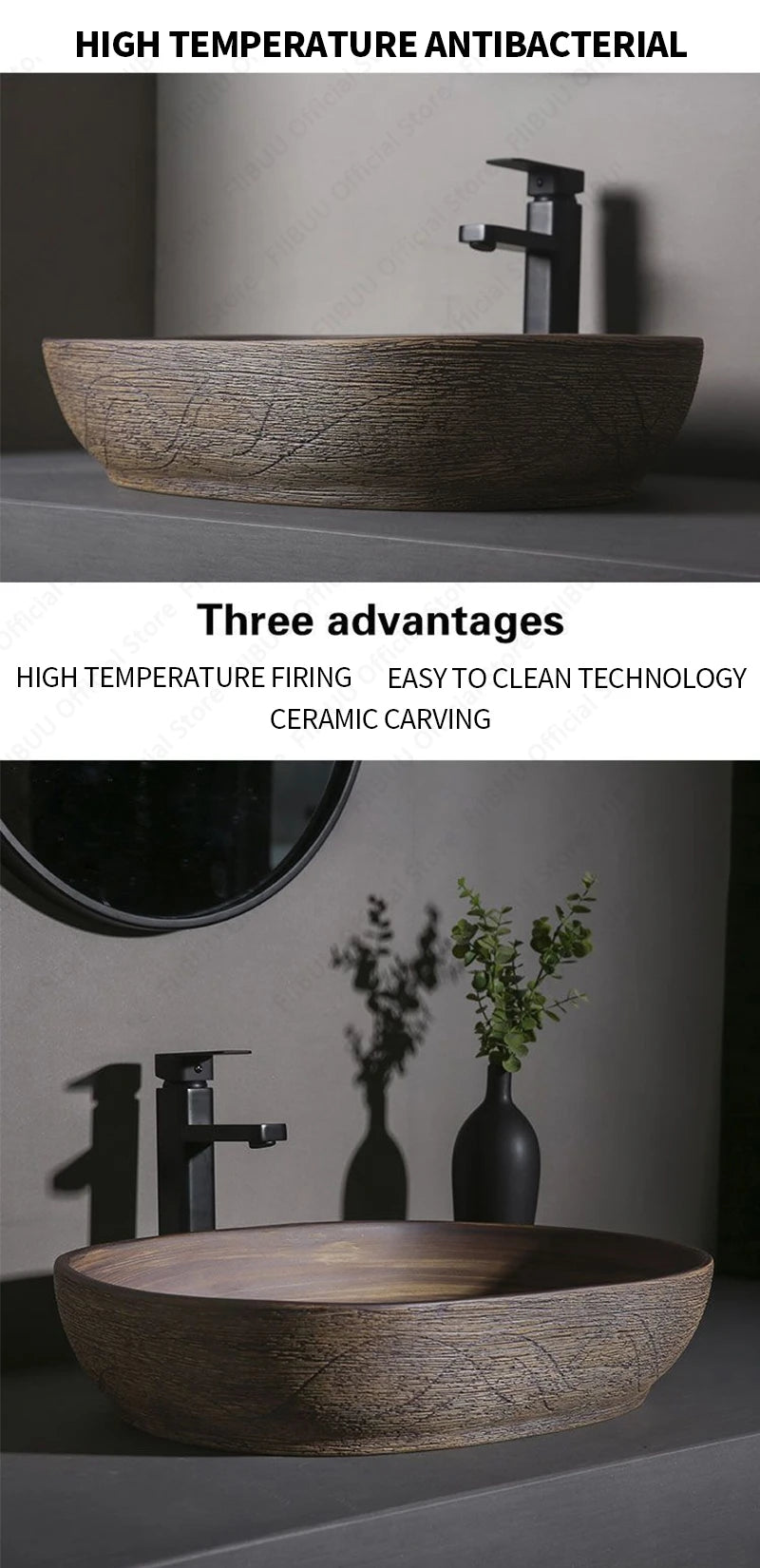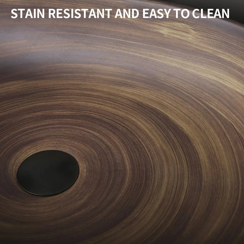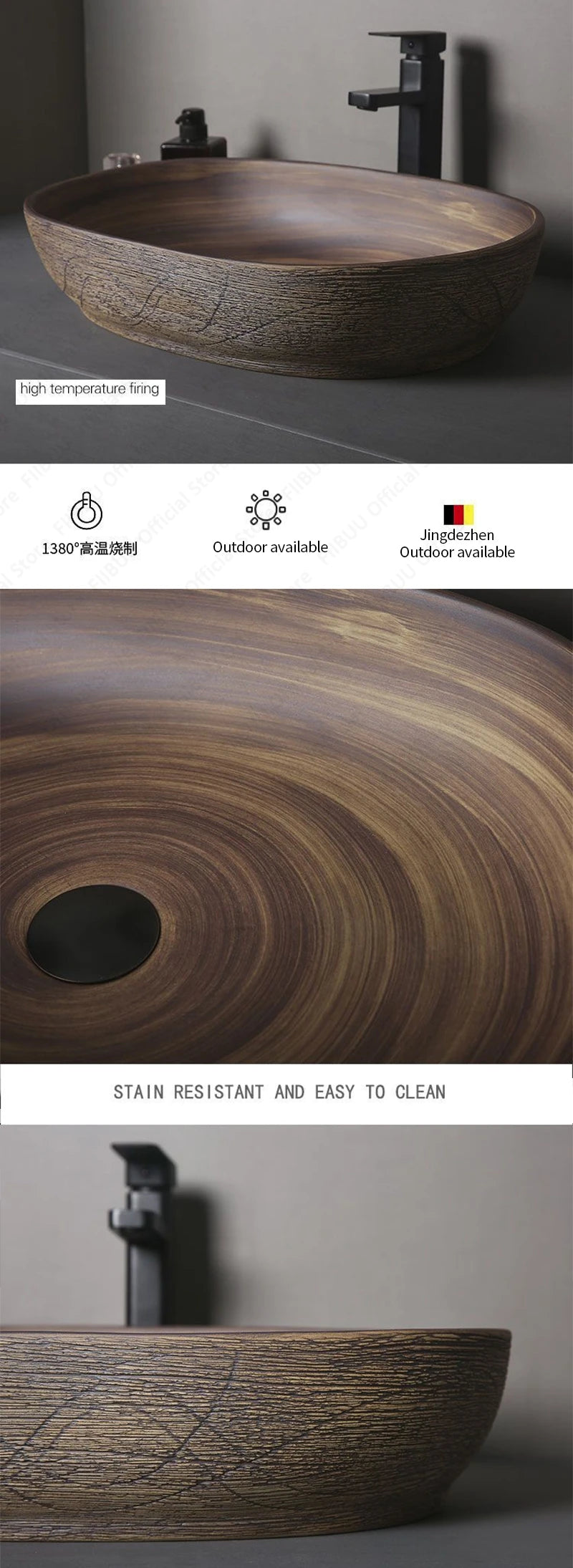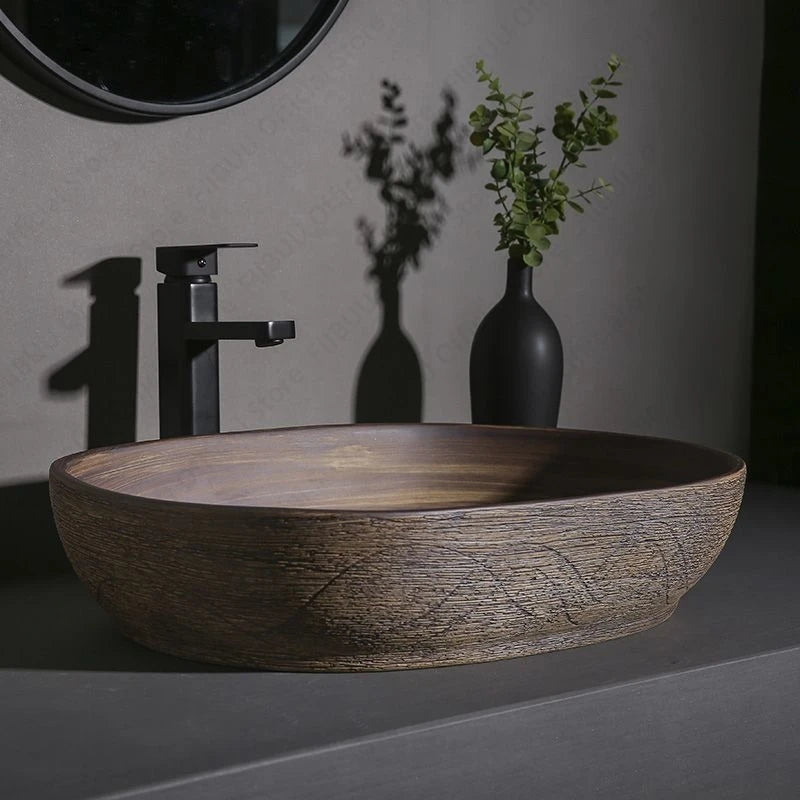 Braunes Keramikgefäß, Waschbecken, Waschtisch, Schüssel, ovaler Badezimmertisch, Waschbecken, Toilette, Balkon, Kunstbecken, über der Theke, Sockelwaschbecken