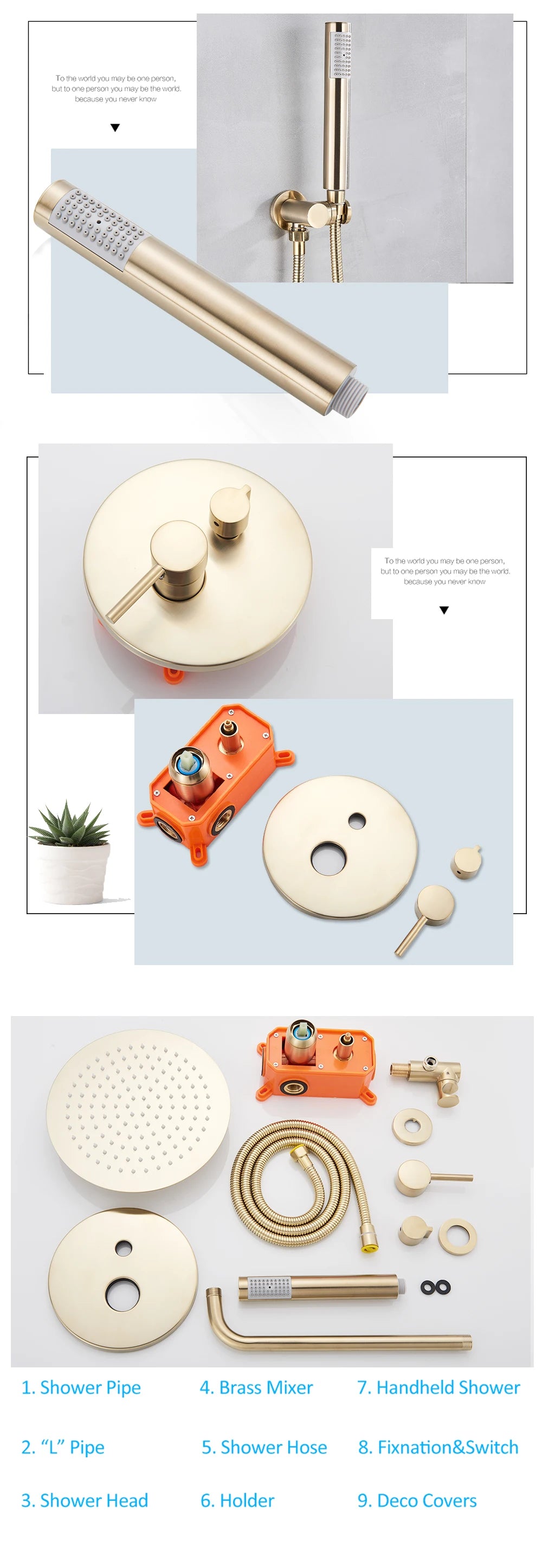 Brushed Gold Shower Faucets Set Rainfall Shower System Concealed Hot Cold Water Mixer Tap Bathroom Round Shower Faucet