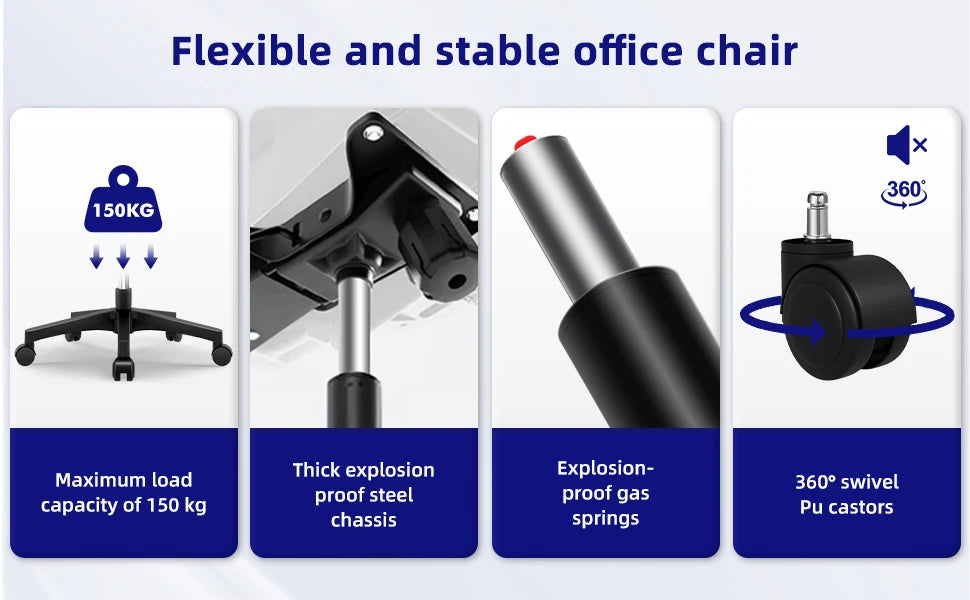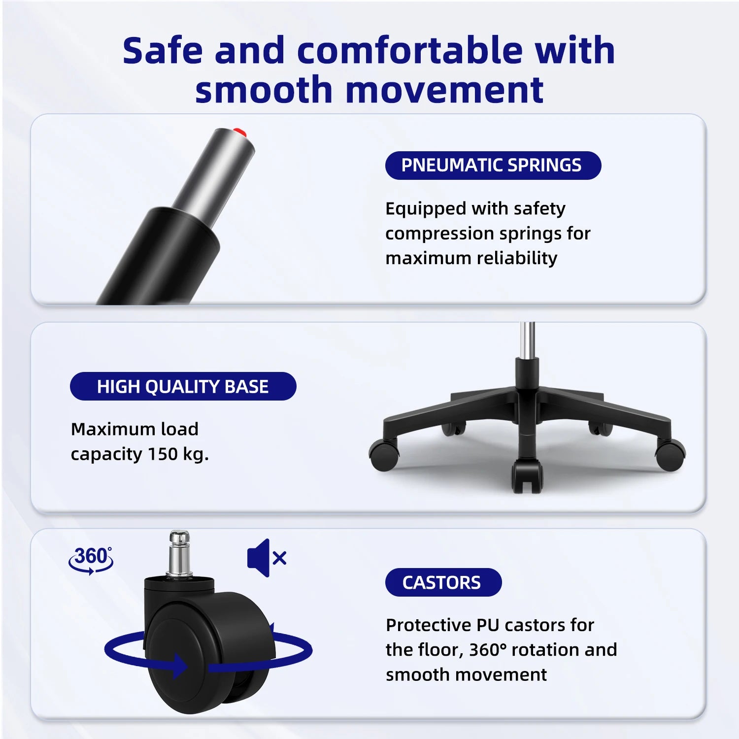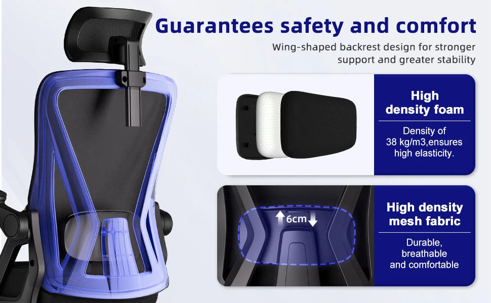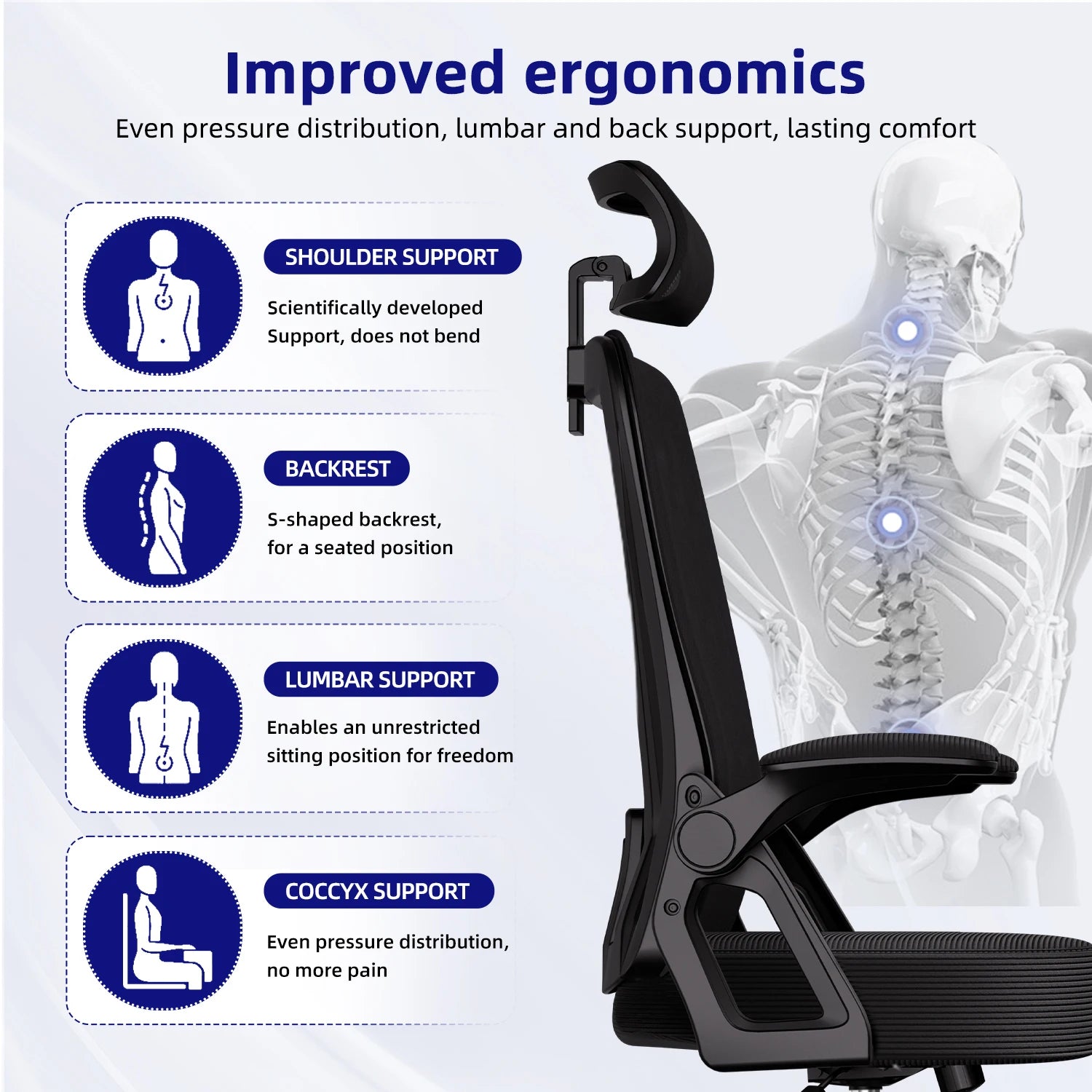 Bürostuhl, ergonomisch, verstellbar, 90er ° -135 ° ,Schreibtischstuhl mit Lordosenstütze, Computerstuhl mit verstellbarer Kopfstütze, Wohnzimmerstühle