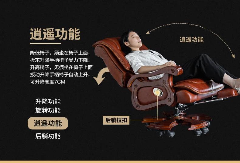Business Leder Büro Computer Stuhl Liege Verstellbare Rückenlehne Executive Rotierenden Stuhl Massage Computer Büro Möbel