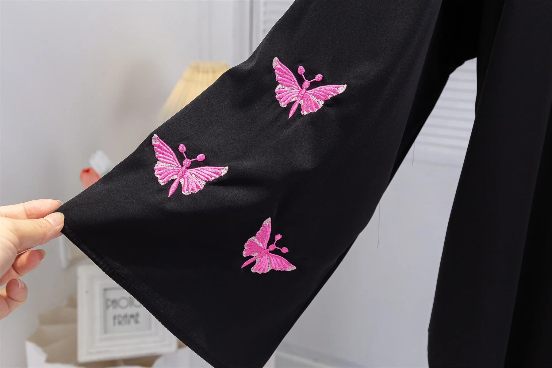 Butterfly Embroidery Open Front Abaya Women Long Sleeve Maxi Length Dress Muslim Abayas Kaftans Women Jilbabs Women's Clothing