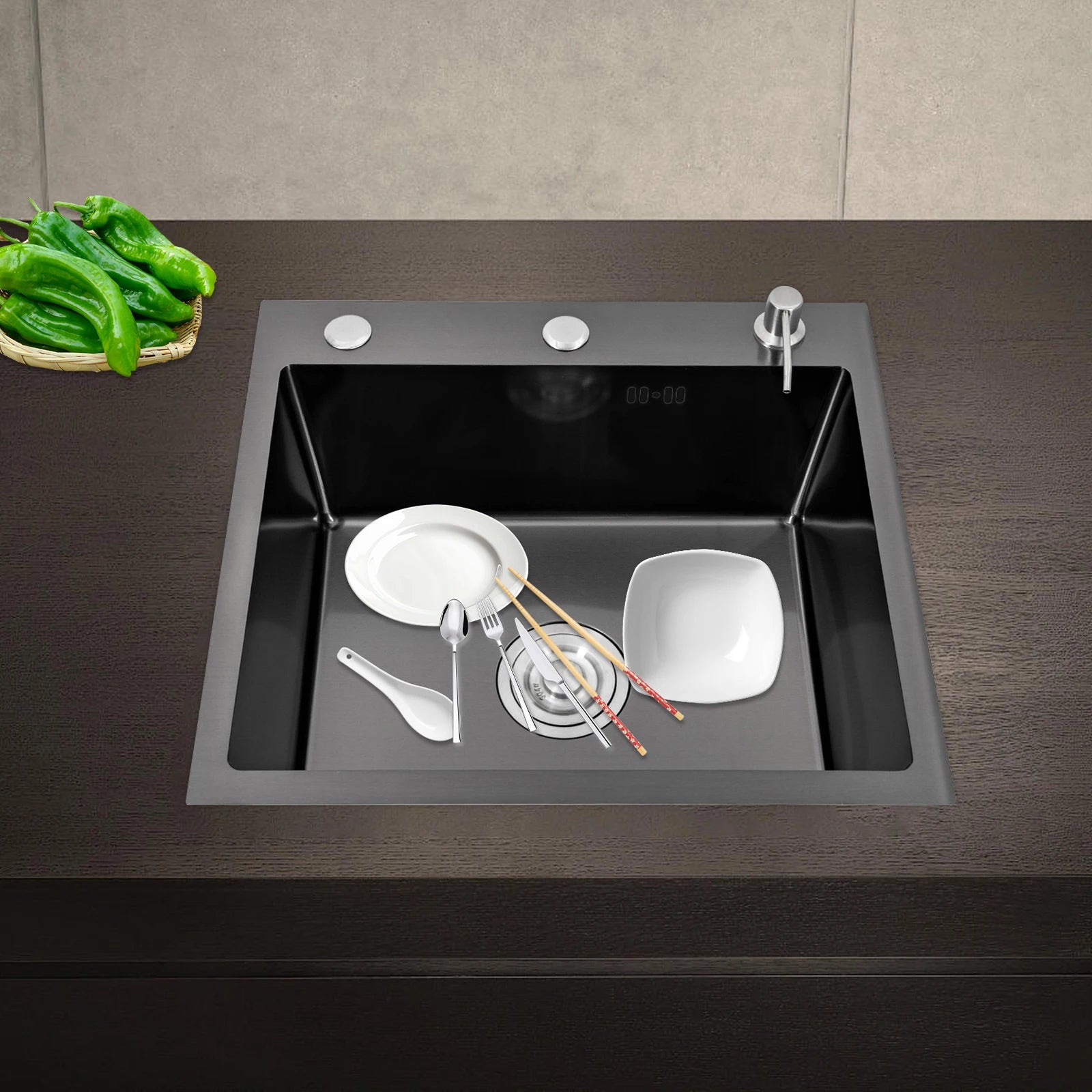 BYMAOCAR Waschbecken, mattschwarz (50 x 45 cm), Küchenspüle aus Edelstahl mit Seifenspender, integriertes Waschbecken mit Abfluss und Rohr