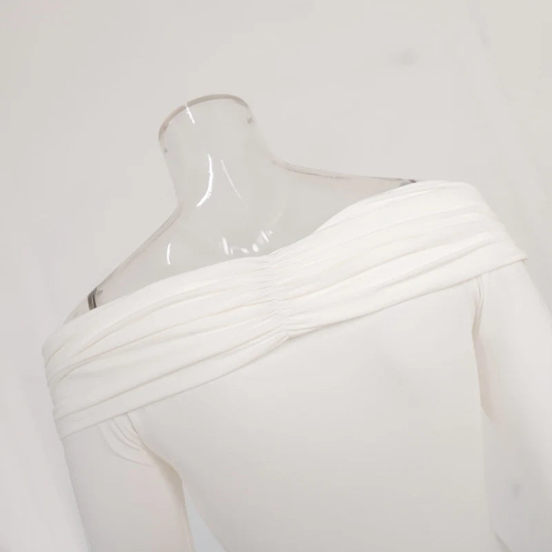 Chic Sexy Criss-cross Pleated Slash Neck Slim Fit Solid Color Basic 2024 Sexy Hot Female Long-sleeves High Waisted Bodysuit Tops