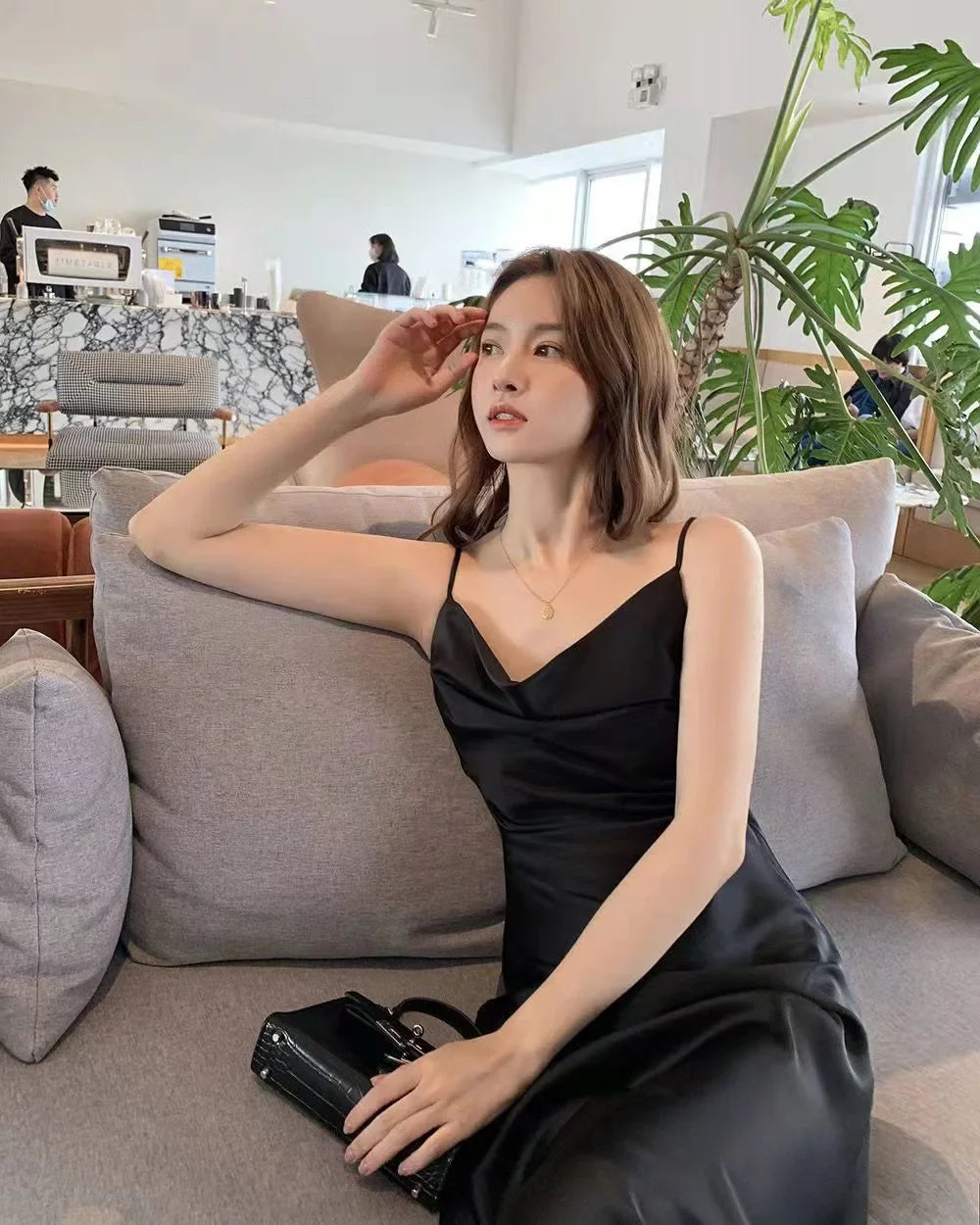 Chiffon-Stoff, Neckholder, mittellanges Kleid für Damen, Sommer, neuer sanfter Stil, schlankmachende Taille, A-Linien-Rock, Polyesterfaser, ärmellos