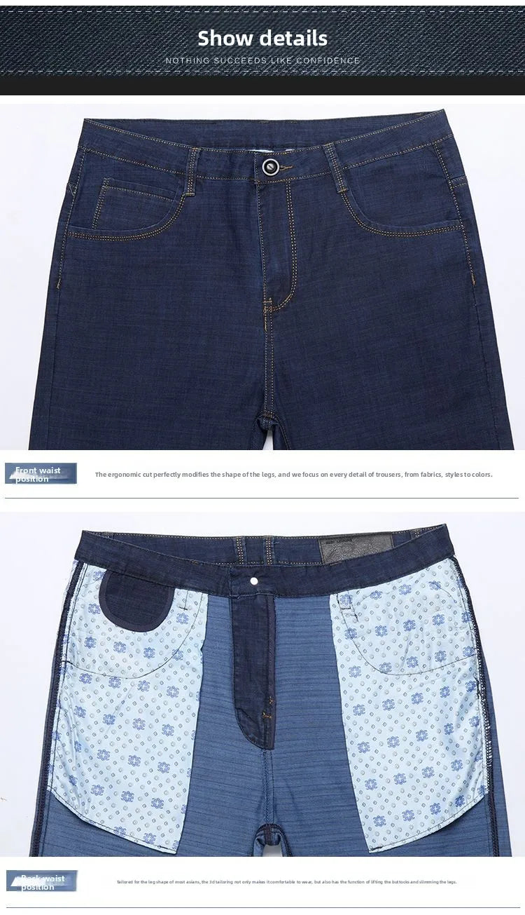 Classic Straight Men's Jeans Fitted Comfortable Elastic Business Casual Denim Pants Korean Fashion Autumn Casual Trousers