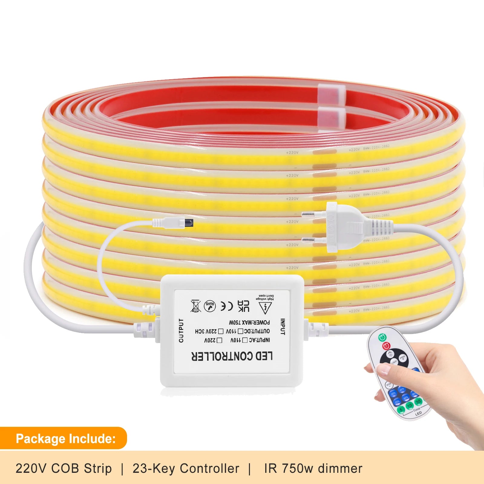 COB LED Strip Dimmable 220V 288LEDs/m Wall Touch Wifi Bluetooth Remote Control Power Kit Waterproof Silicone Tube Adhesive Tape