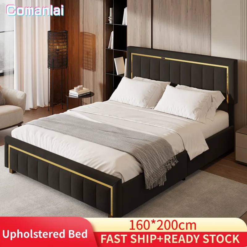 Comanlai Polsterbett, 160 x 200 cm, hydraulisches Bett mit Stauraum, mit Kopfteil und Lattenrost, Doppelbett, keine Matratze, Schwarz
