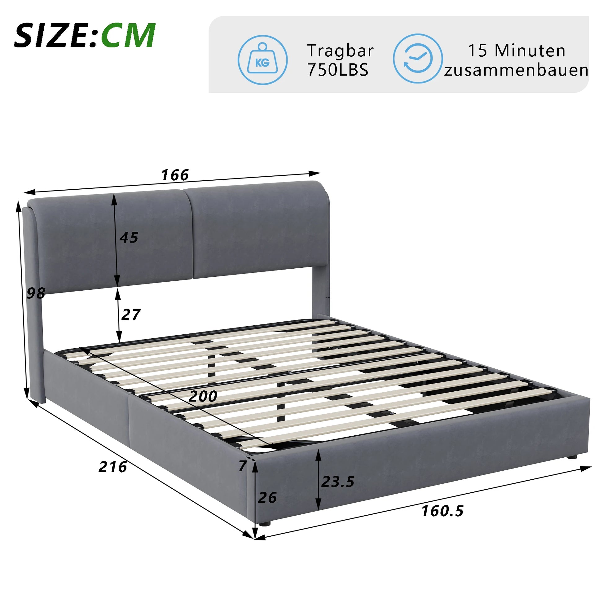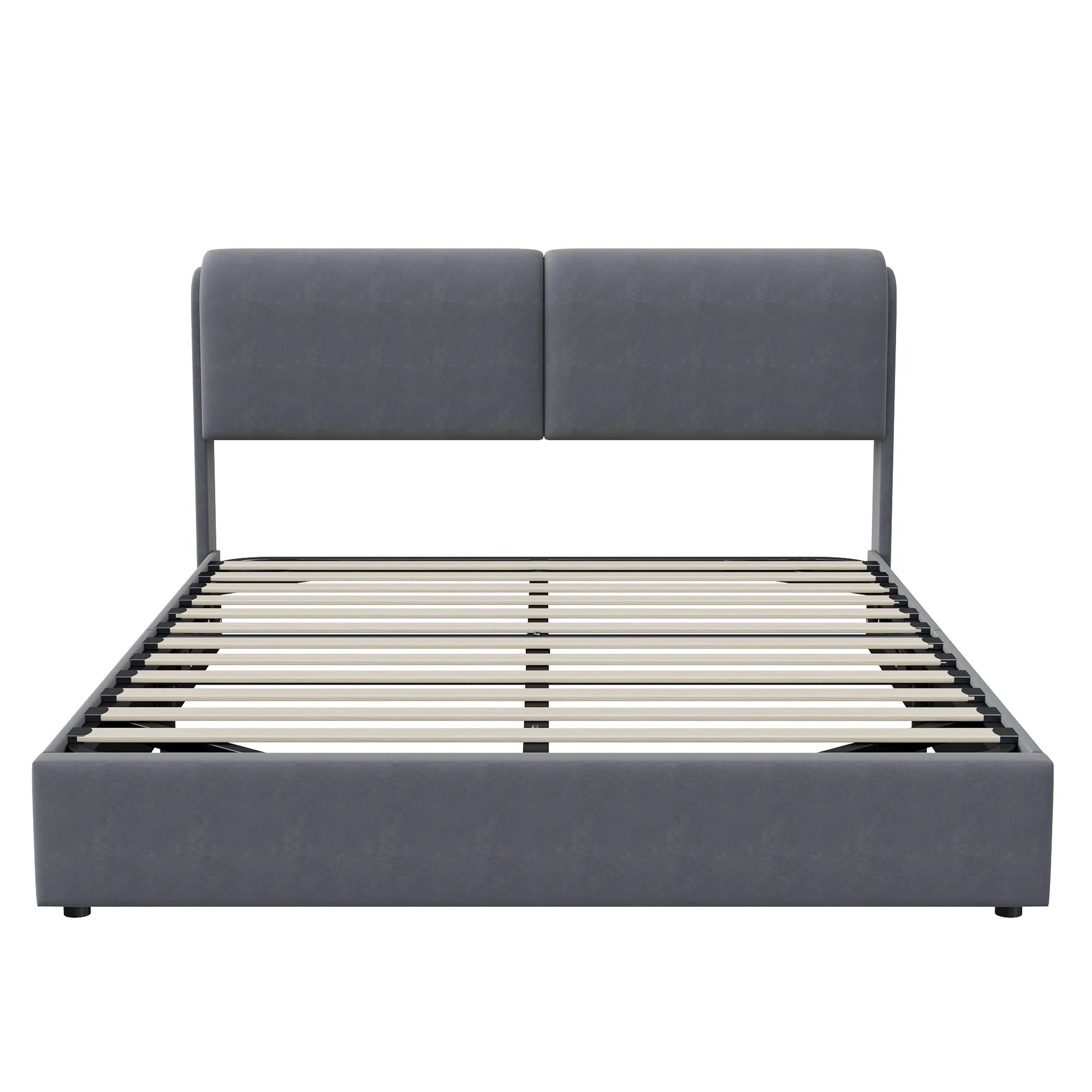 Comanlai Polsterbett, 160 x 200 cm, mit Lattenrost und Stauraum, hydraulisches LED-Bett mit Stauraum, ohne Matratze, Samt, Grau