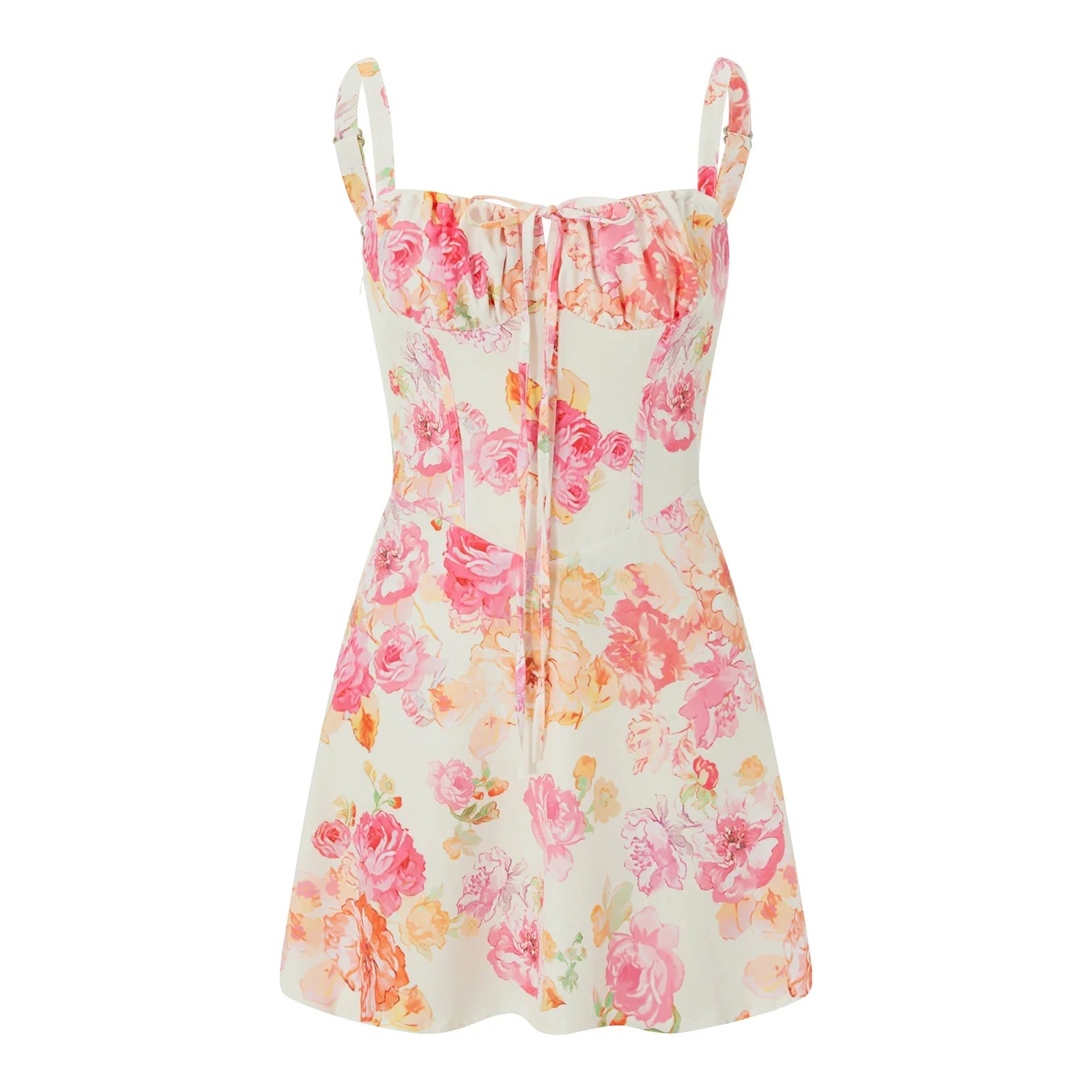 Combhasaki Damen-Kleid, elegant, Blumendruck, tief ausgeschnitten, zum Binden, ärmellos, Cami, figurbetont, Korsett, kurzes Kleid, Sommer, rückenfrei, Party, Clubwear